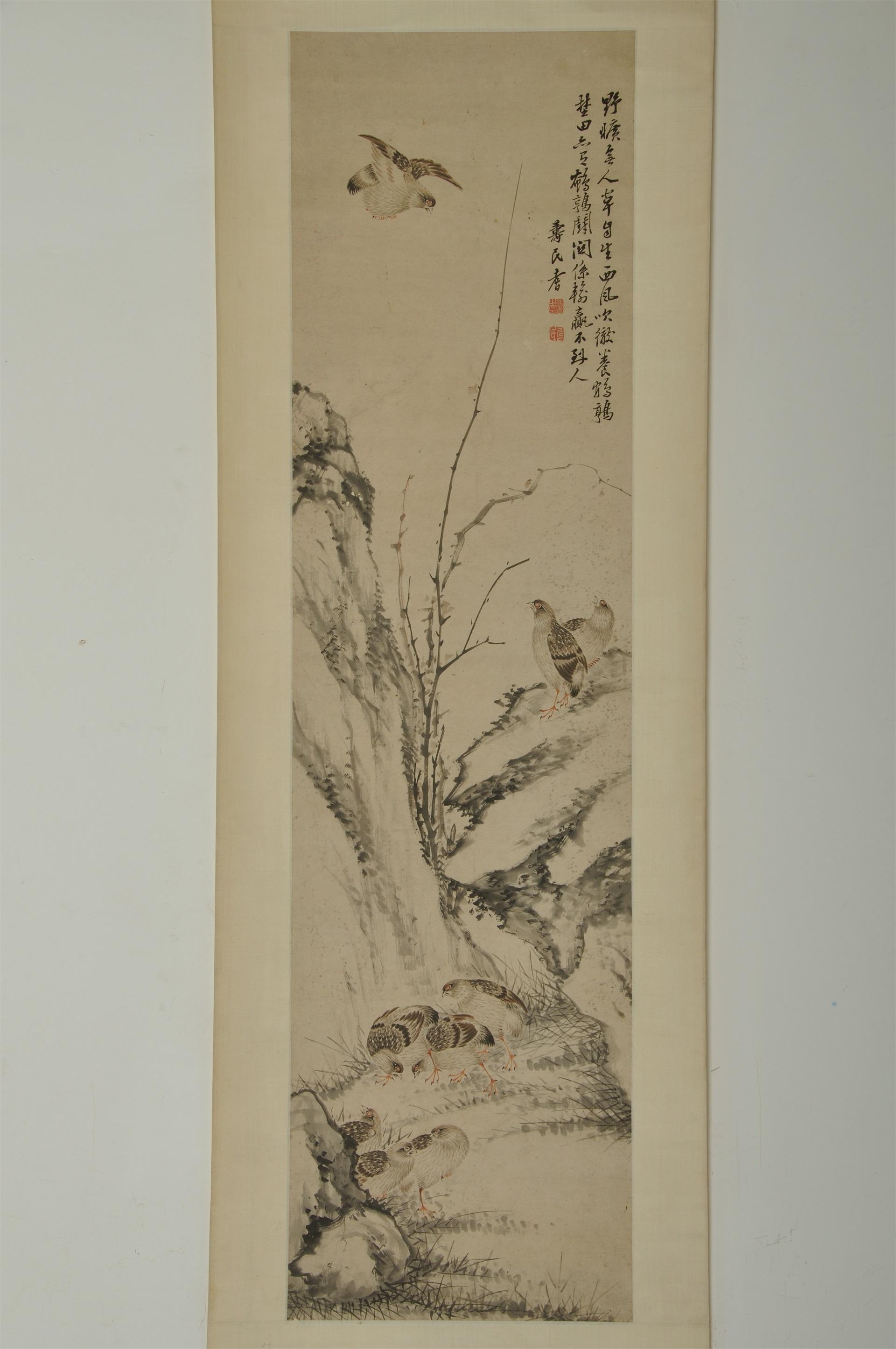 | 1110 | 清张迺耆纸木鹌鹑立轴 | 清 | 通长139 通宽37.3 | 查看 |