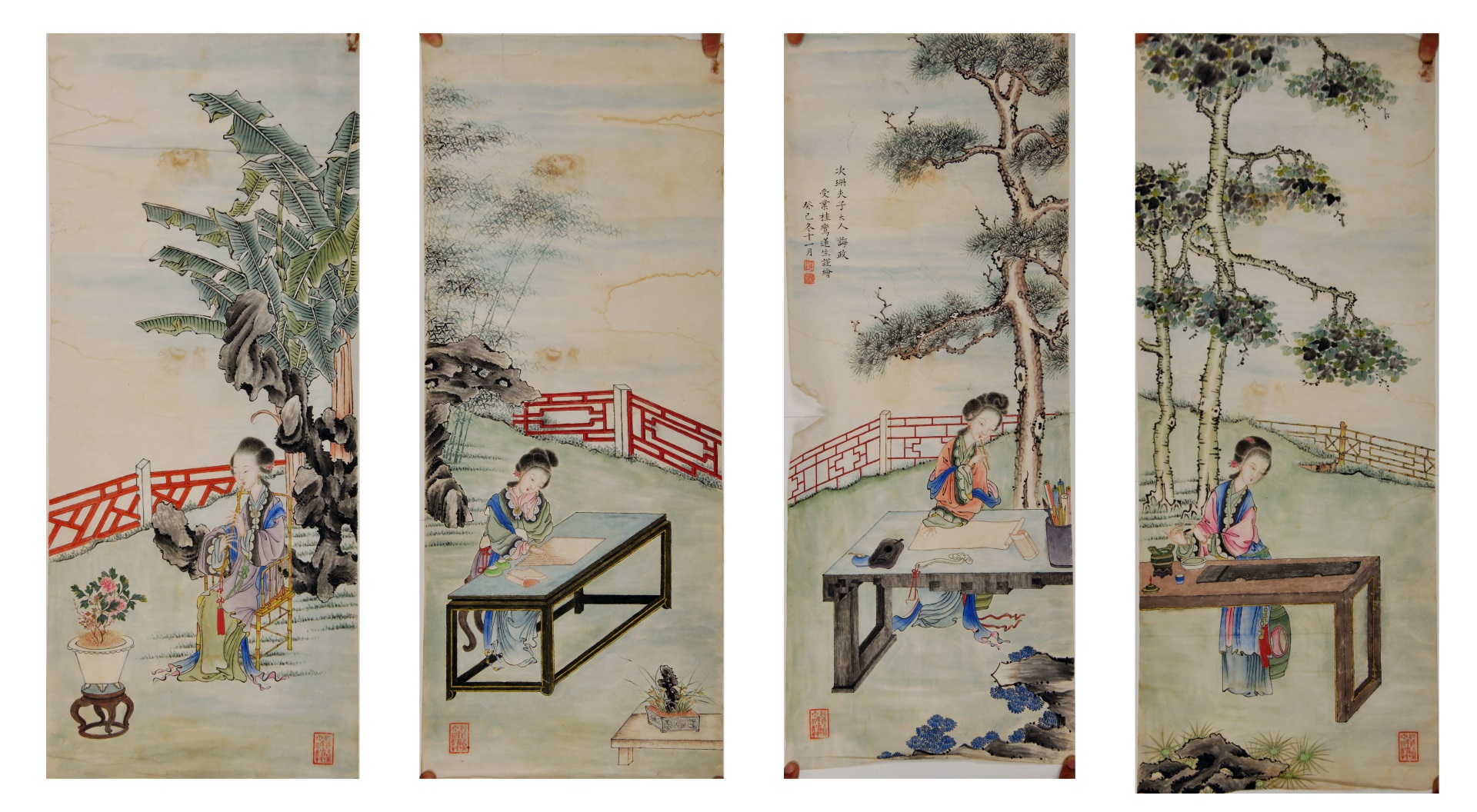 | 1304 | 清桂鸾纸本设色仕女屏 | 清 | 通长64.7 通宽25.6 | 查看 |