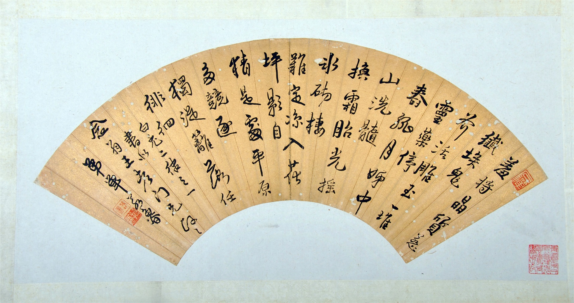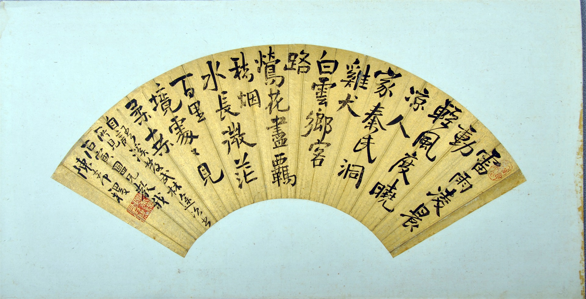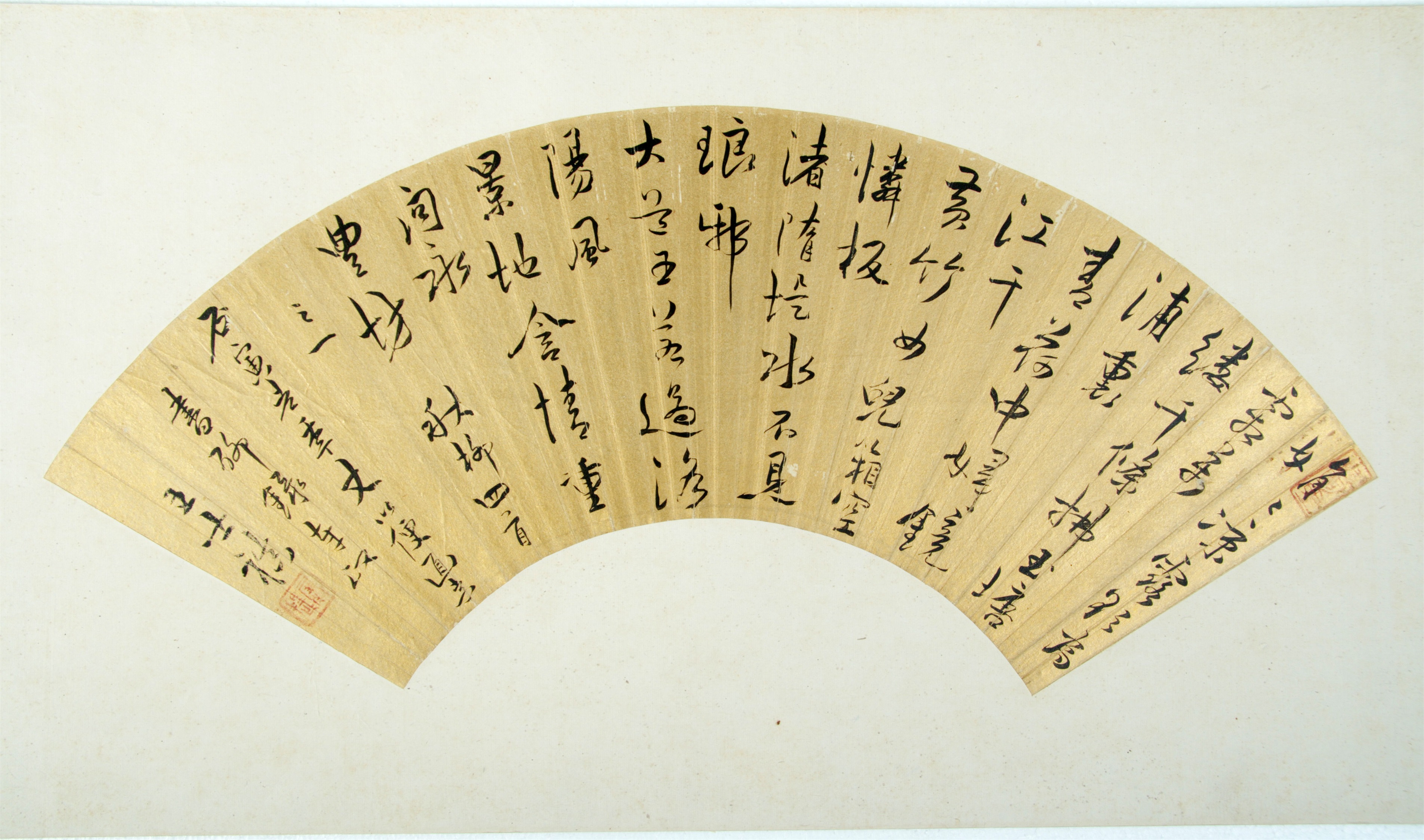 | 128 | 清李澄中泥金草书诗便面 | 清 | 通长16.8 通宽51.5 | 查看 |