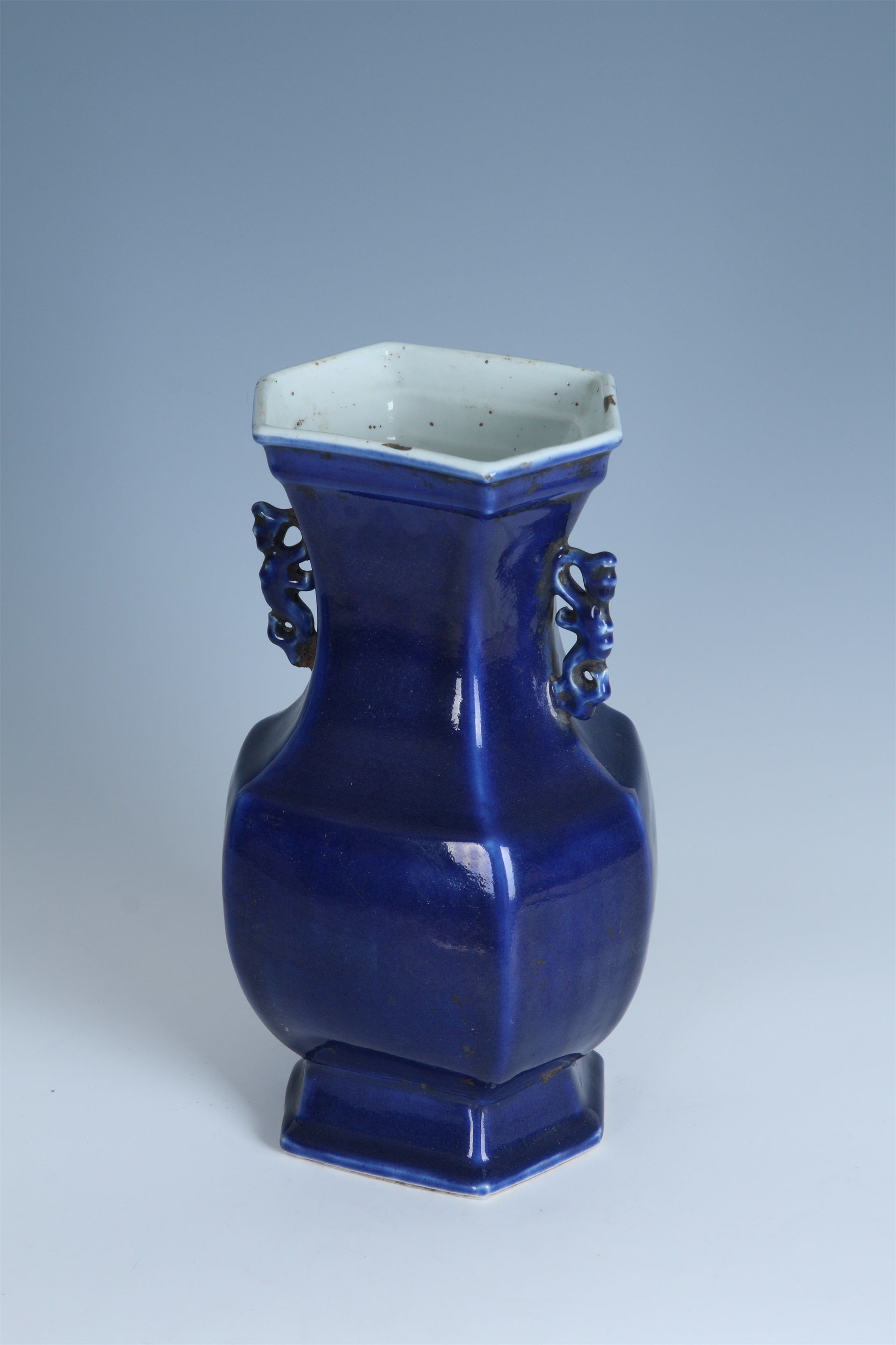 | 1508 | 清乾隆霁兰釉螭耳六棱瓷瓶 | 清 | 通长13 通宽13.8 通高37.5长底径17.5 宽底径15.5厘米 | 查看 |