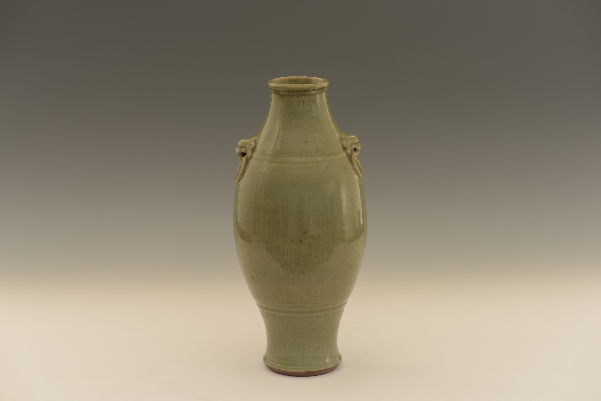| 153 | 明龙泉窑青釉橄榄式双兽耳瓷瓶 | 明 | 通高38.5腹径18口径8厘米 | 查看 |
