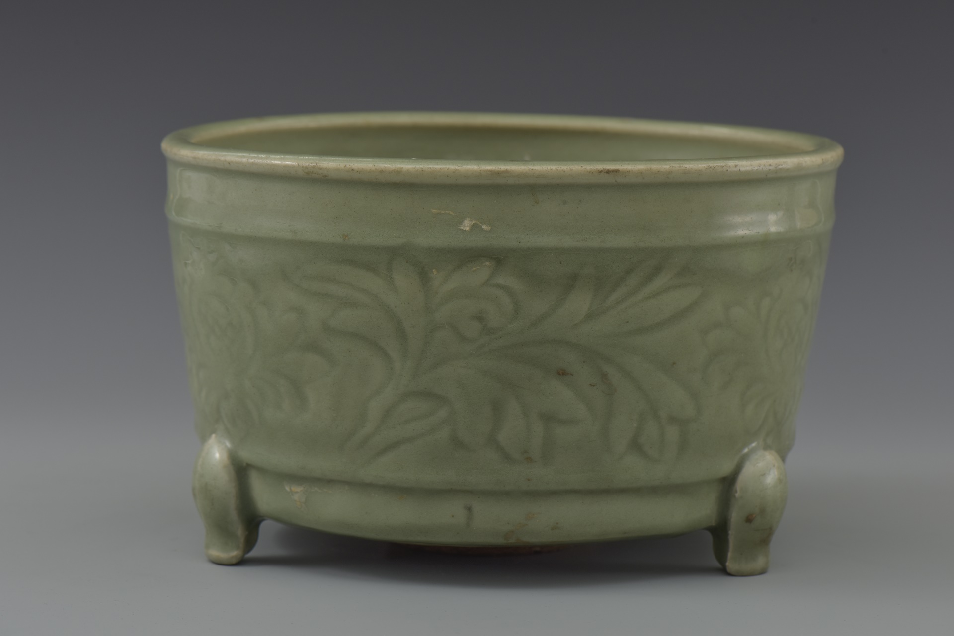 | 159 | 明龙泉窑青釉牡丹纹三足瓷炉 | 明 | 通高15.5 口径15厘米 | 查看 |