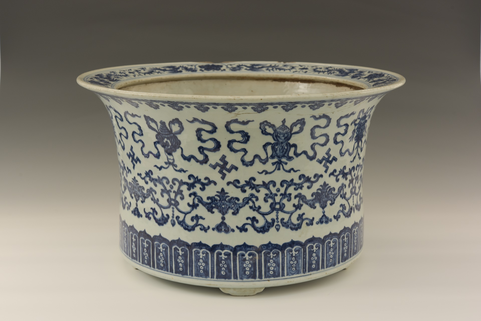 | 298 | 清乾隆青花八宝纹瓷花盆 | 清 | 通高28 口径48.3厘米 | 查看 |