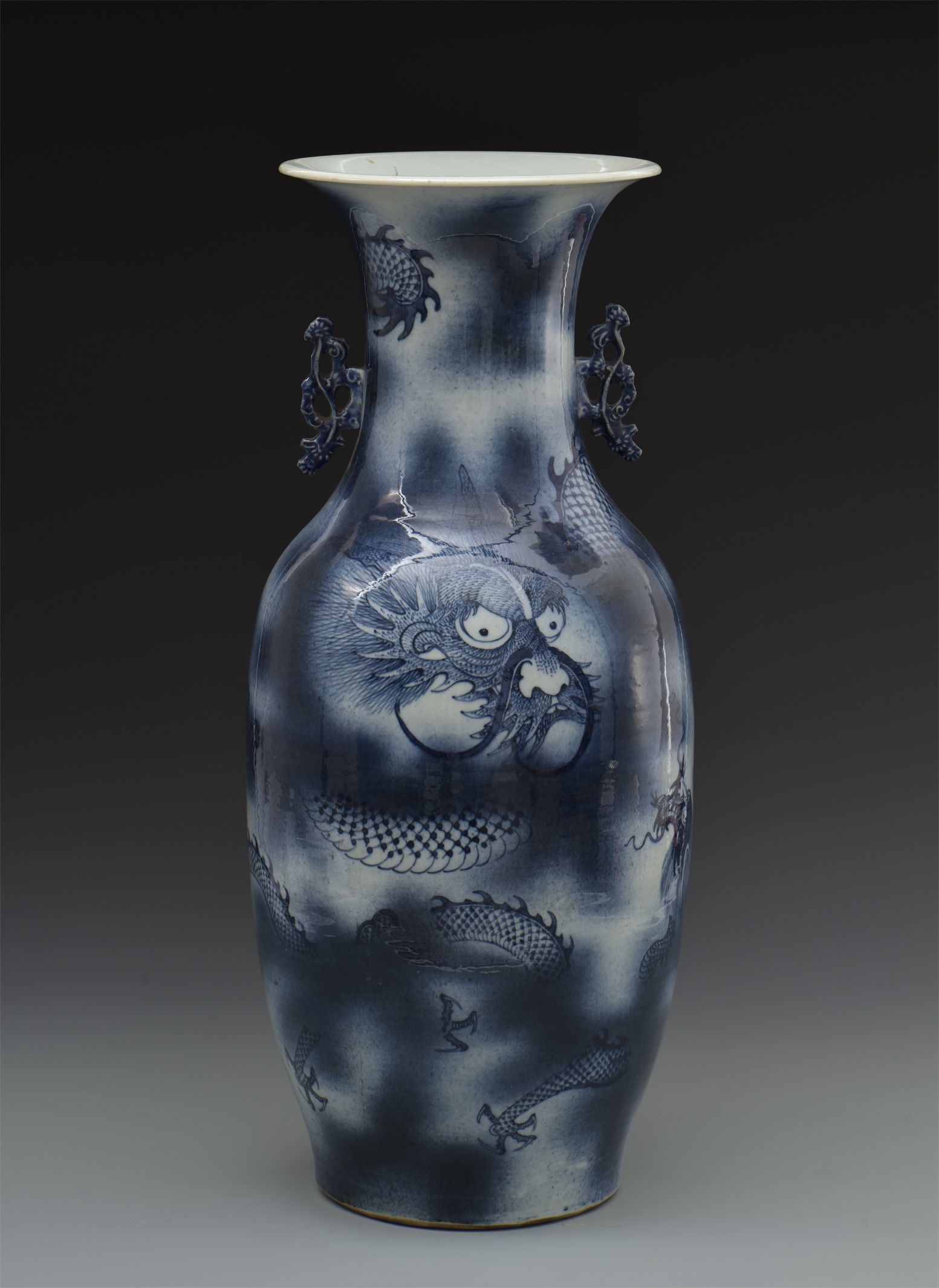 | 299 | 清乾隆青花云龙纹双螭耳瓷瓶 | 清 | 通高58腹径25厘米,口径20.3厘米 | 查看 |