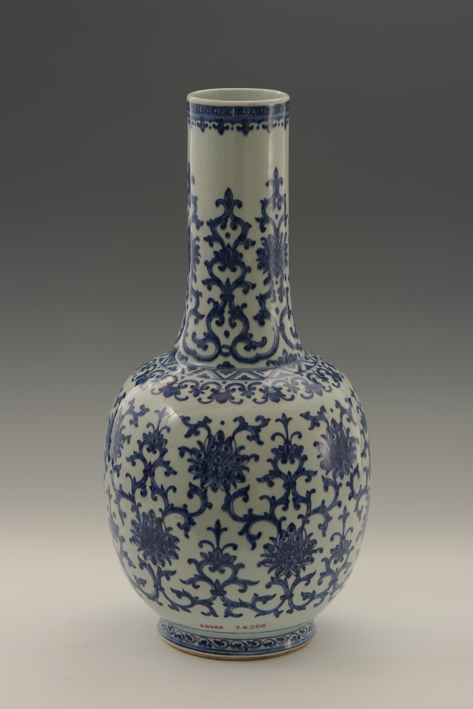 | 300 | 清乾隆青花缠枝莲纹长颈瓷瓶 | 清 | 通高54.5腹径27厘米,口径9.8厘米 | 查看 |