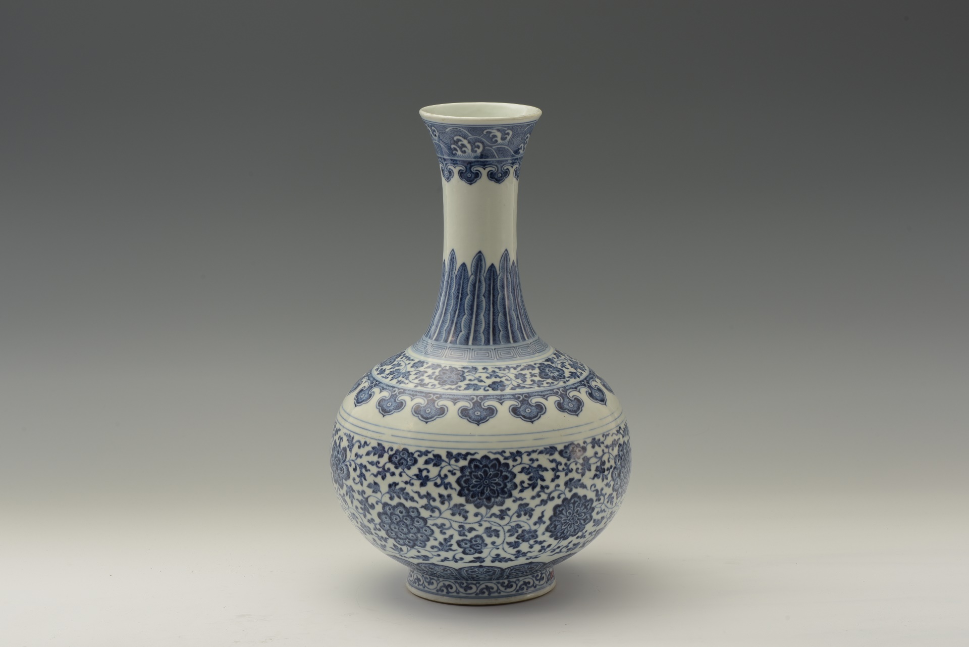 | 301 | 清乾隆青花缠枝莲纹天球瓷瓶 | 清 | 通高37腹径23厘米,口径9.2厘米 | 查看 |