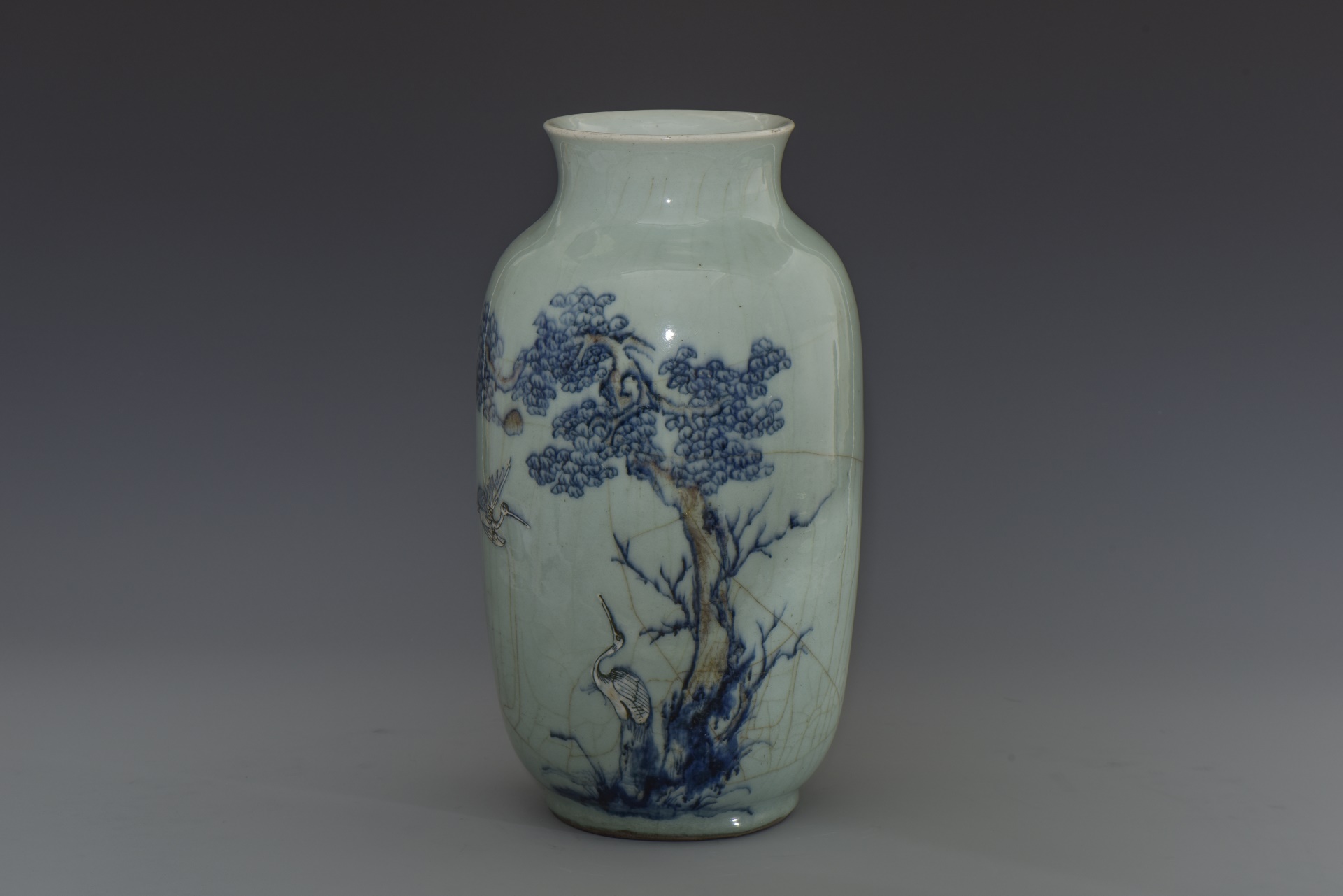 | 329 | 清乾隆豆青地青花加紫松鹤纹瓷瓶 | 清 | 通高36.7腹径20厘米 ,口径13厘米 | 查看 |