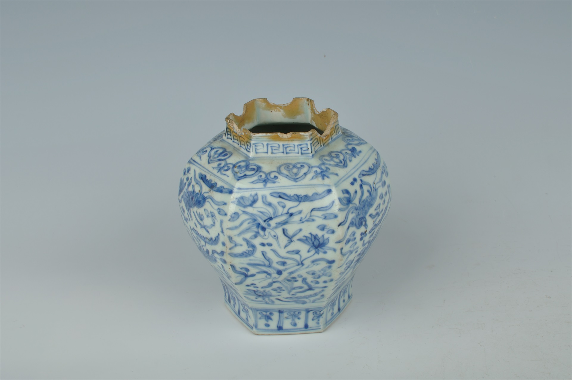 | 708 | 明嘉靖青花花鸟六楞瓷罐 | 明 | 通高16 口径7腹径16 底径9厘米 | 查看 |