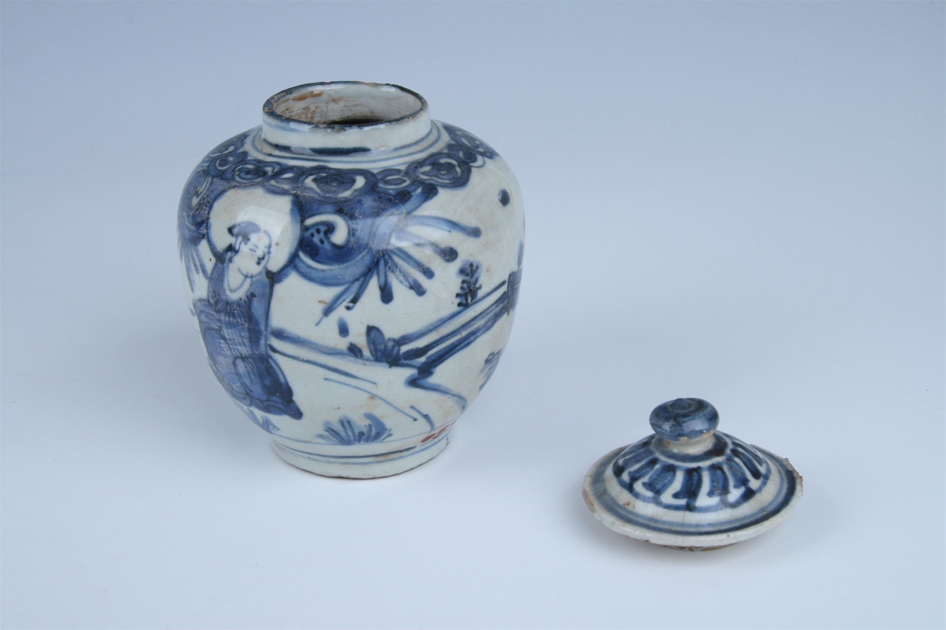 | 711 | 明青花人物纹瓷盖罐 | 明 | 通高14.5 口径5 腹径11 底径6厘米 | 查看 |