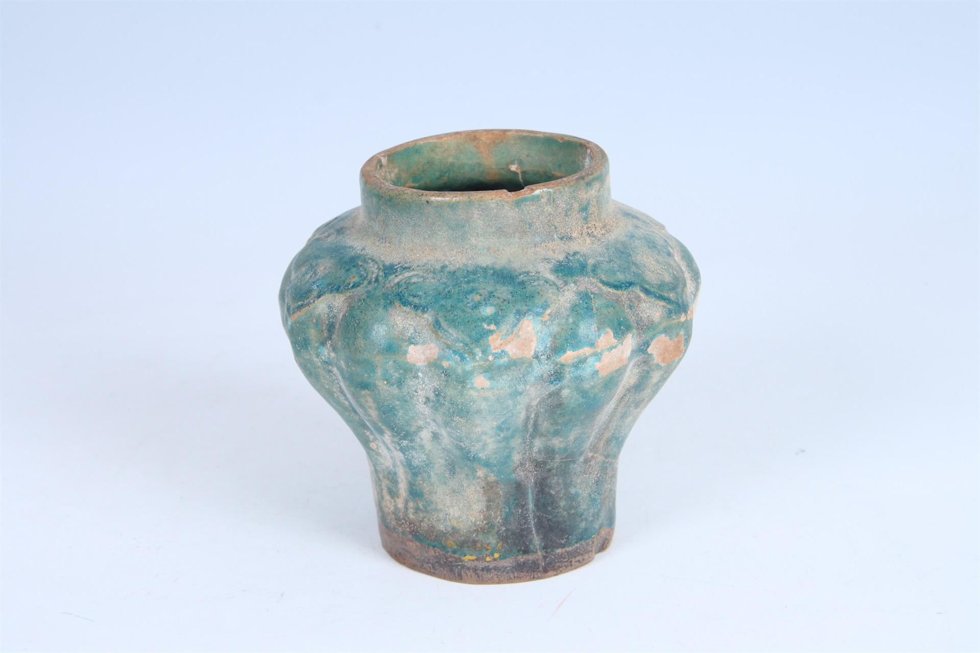 | 884 | 明孔雀蓝釉瓜棱形瓷罐 | 明 | 通高10.5 口径6.3 腹径11 底径6厘米 | 查看 |