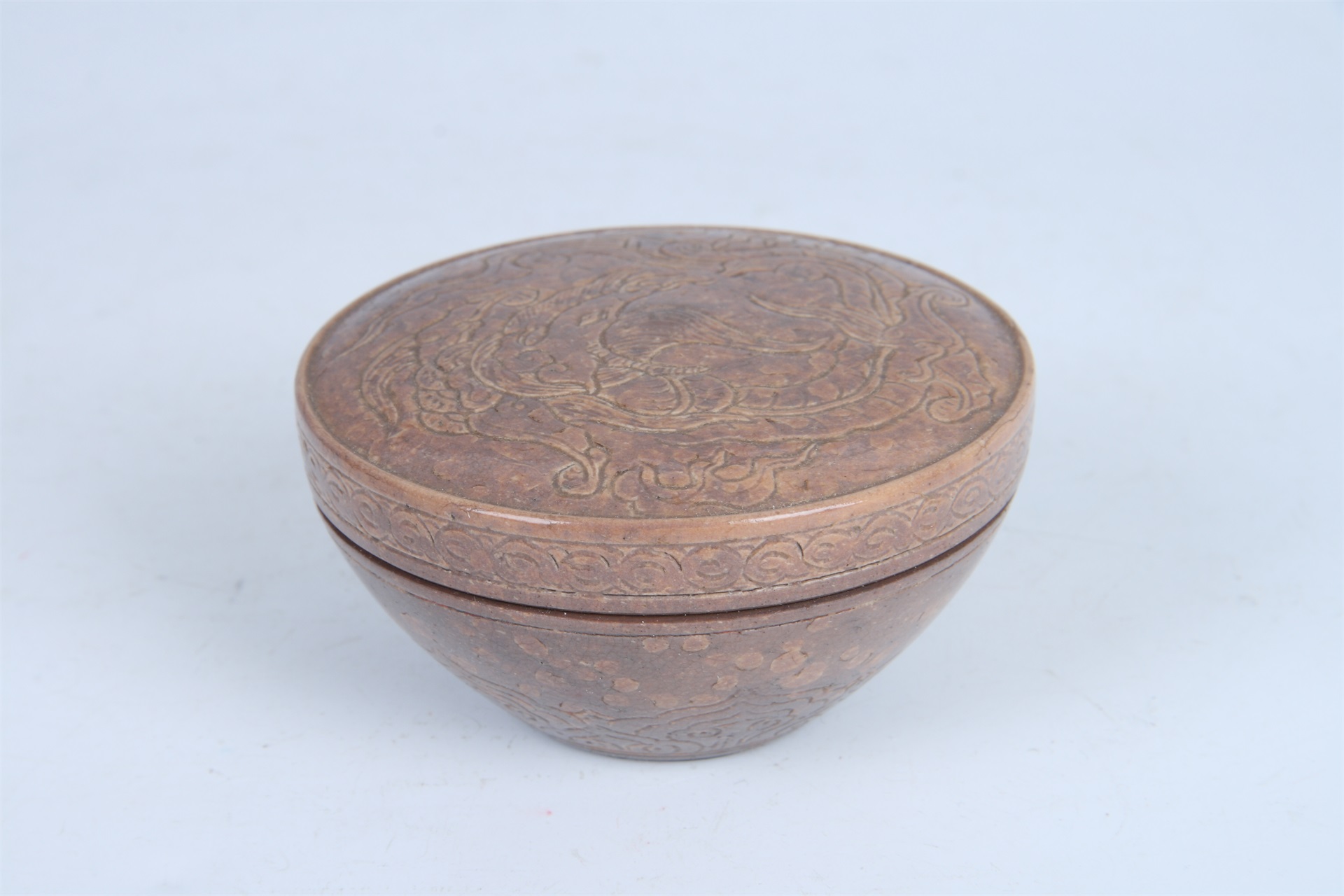 | 973 | 清康熙褐釉刻花瓷印色盒 | 清 | 通高4.9口径8底径3.5厘米 | 查看 |