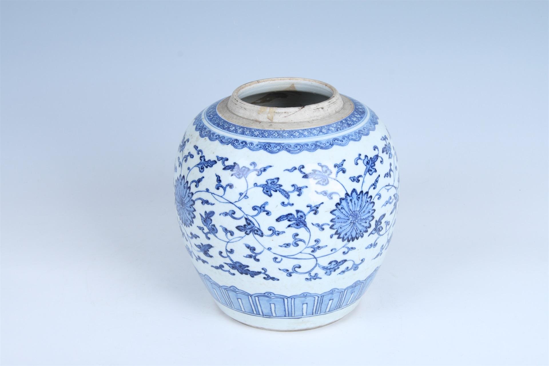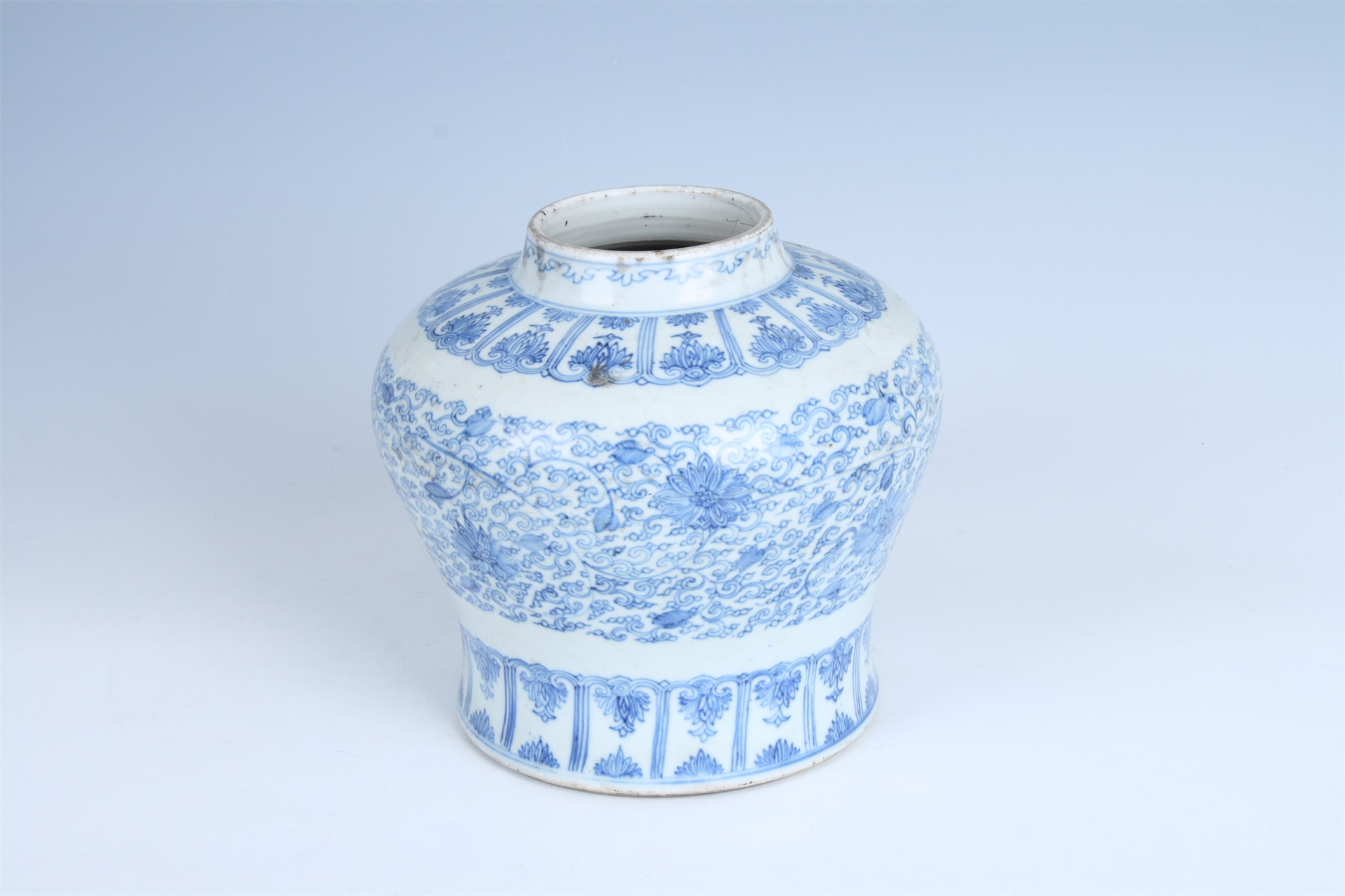 | 976 | 清雍正青花缠枝莲纹瓷罐 | 清 | 通高21.8口径10.4腹径22底径13.5厘米 | 查看 |