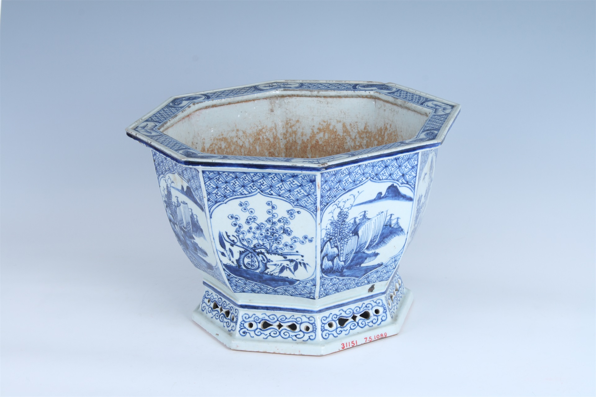 | 1041 | 清乾隆青花开光山水花卉纹瓷花盆 | 清 | 通高24.5 口径39底径27.5厘米 | 查看 |