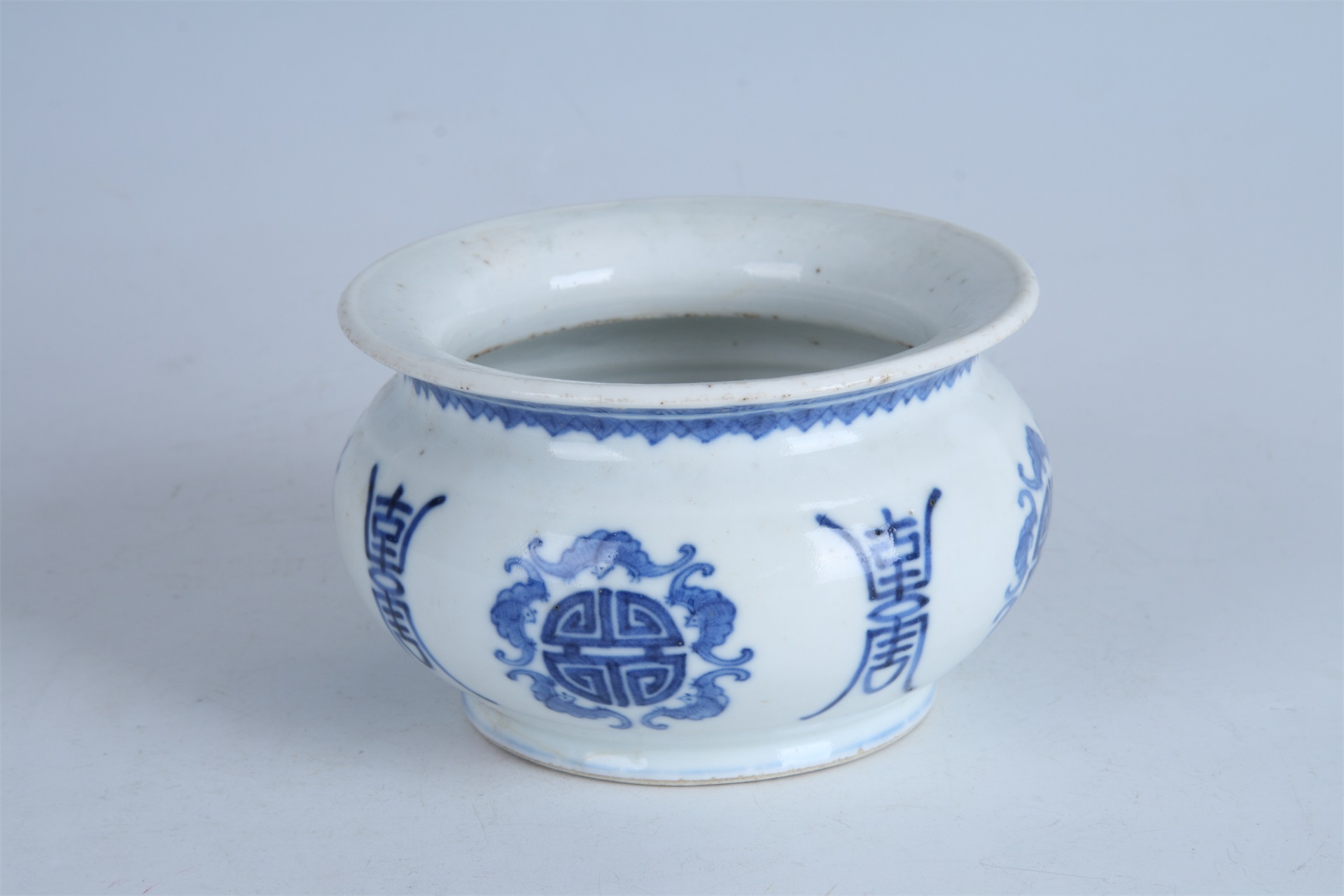 | 1049 | 清五福捧寿青花瓷炉 | 清 | 通高7.4口径11底径8厘米 | 查看 |