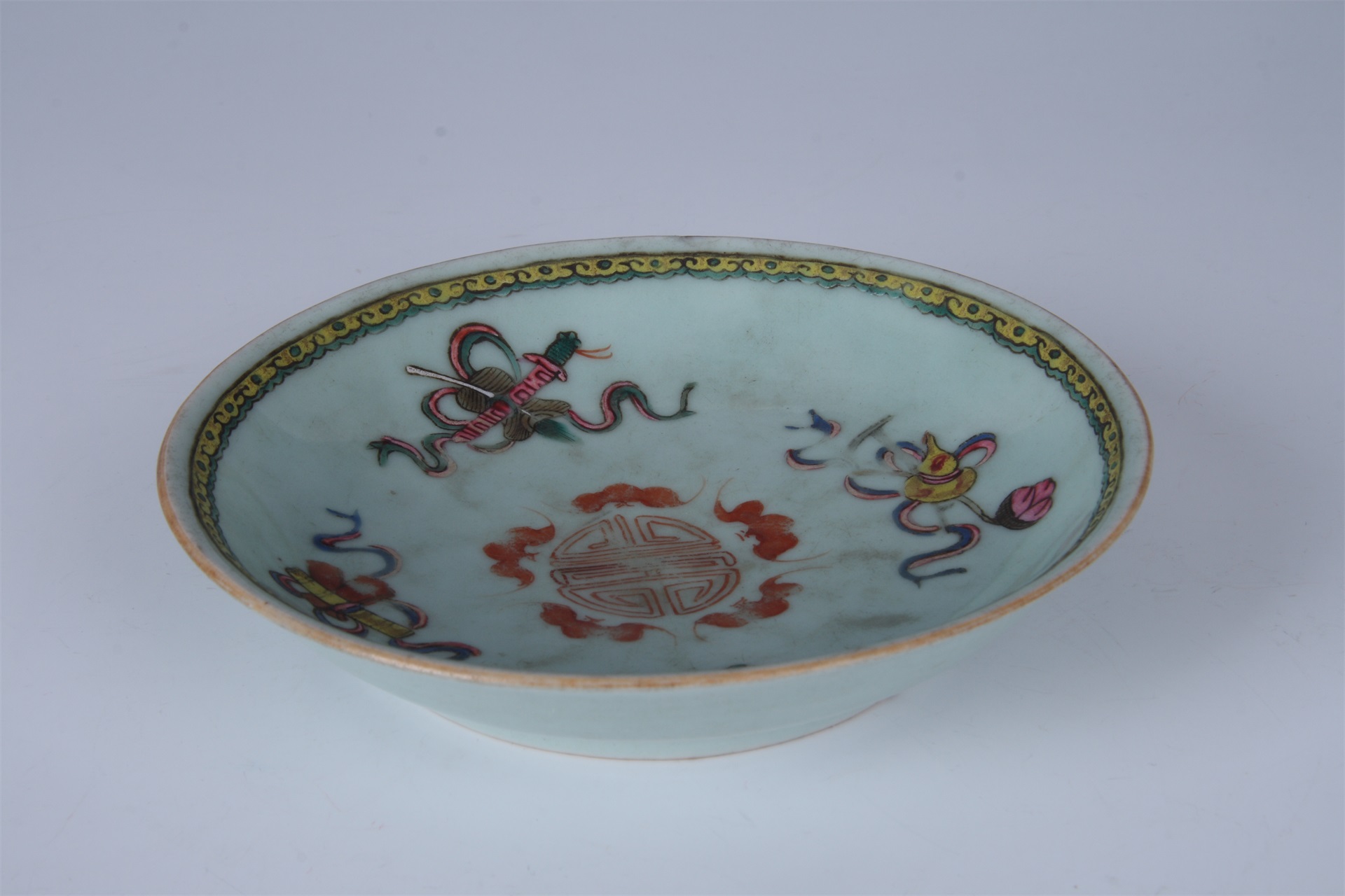 | 1475 | 清乾隆豆青地粉彩八宝纹瓷盘 | 清 | 通高2.1 口径11.4足径6.4厘米 | 查看 |