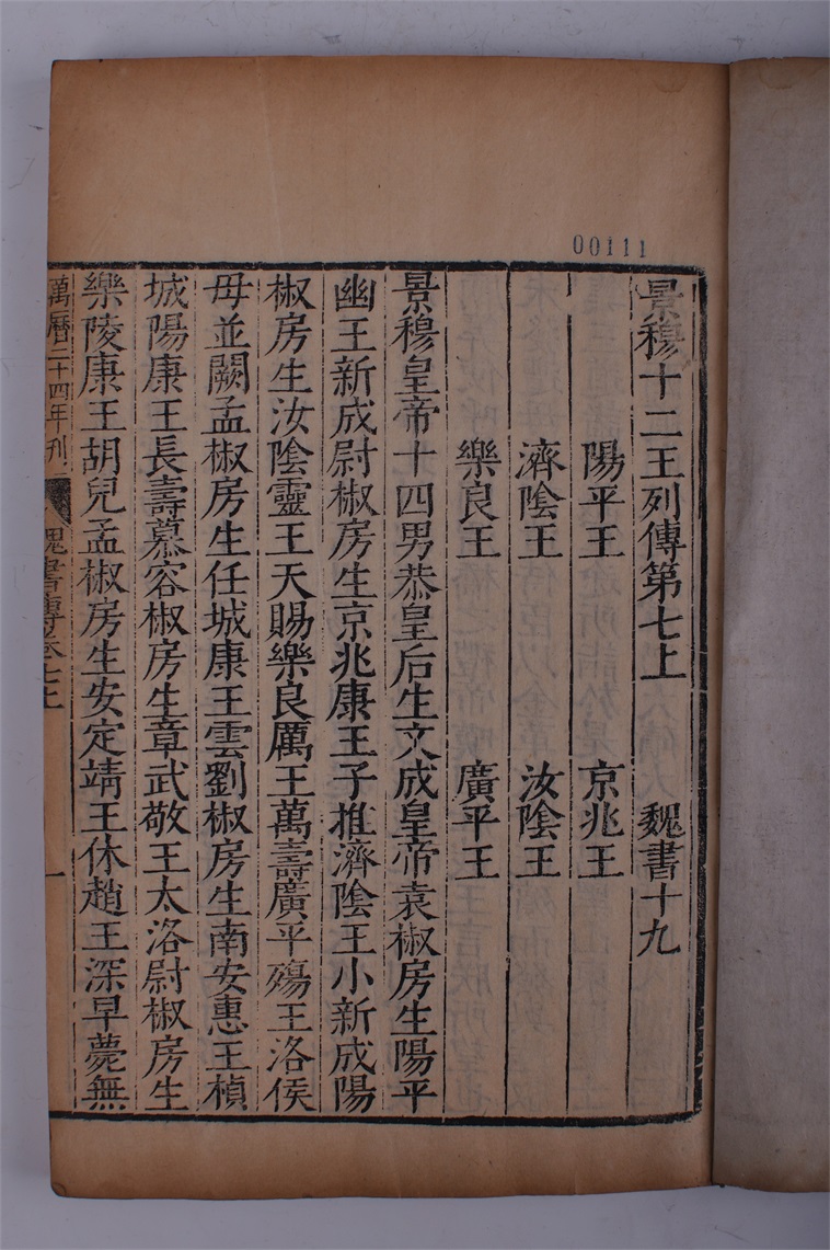 | 127 | 明万历二十四年魏书一百十四卷刻本 | 明 | 通长27.4 通宽17.2 | 查看 |