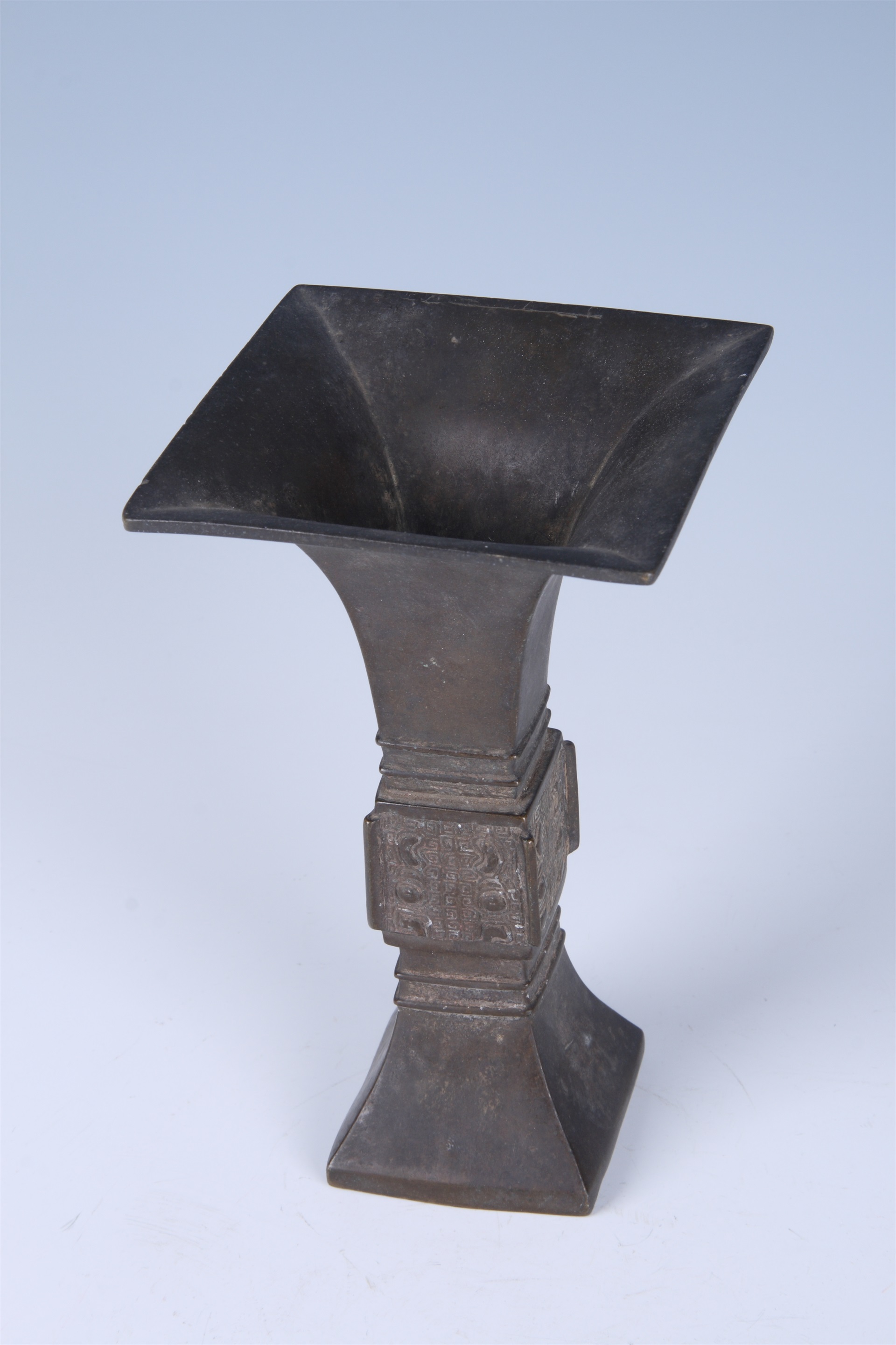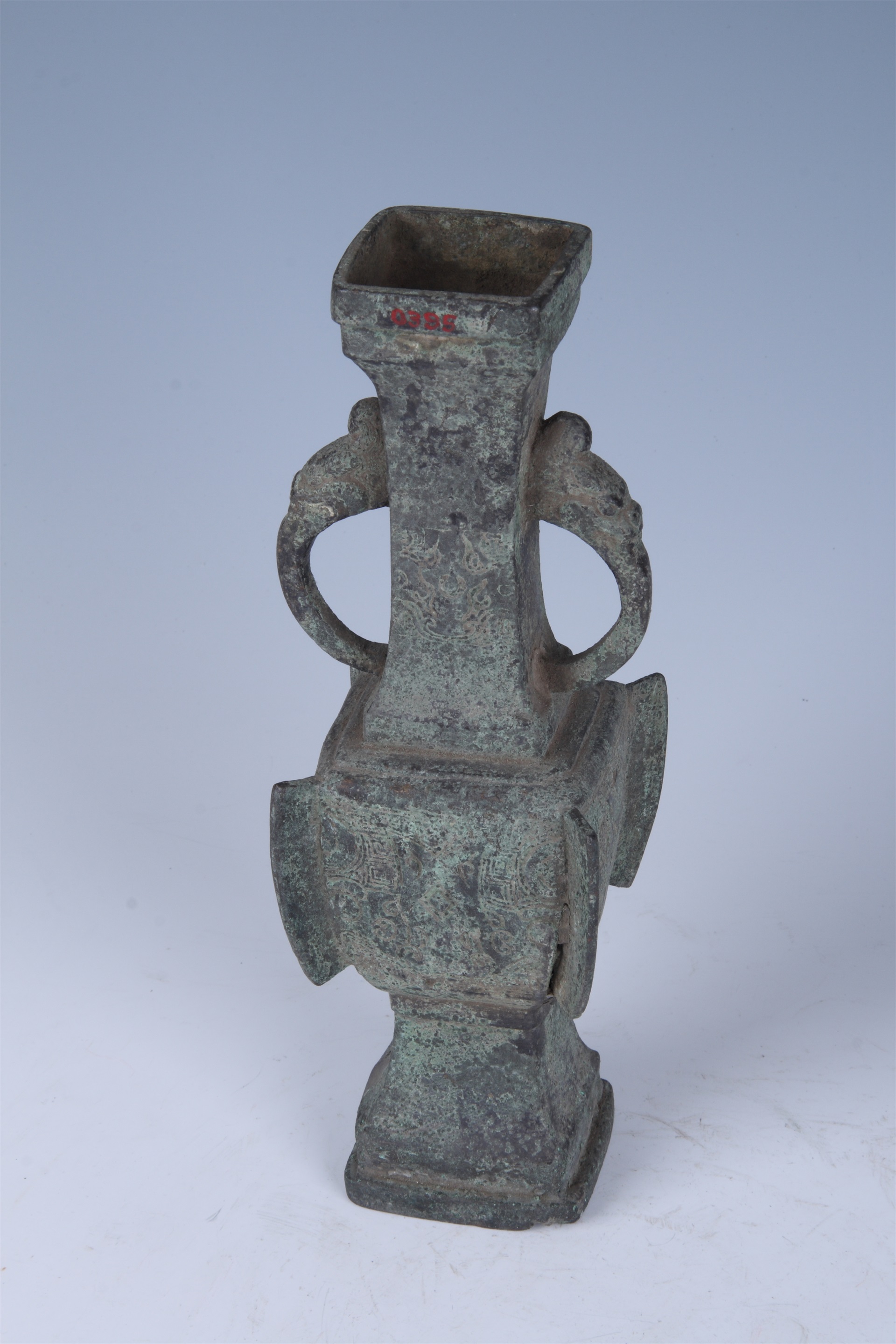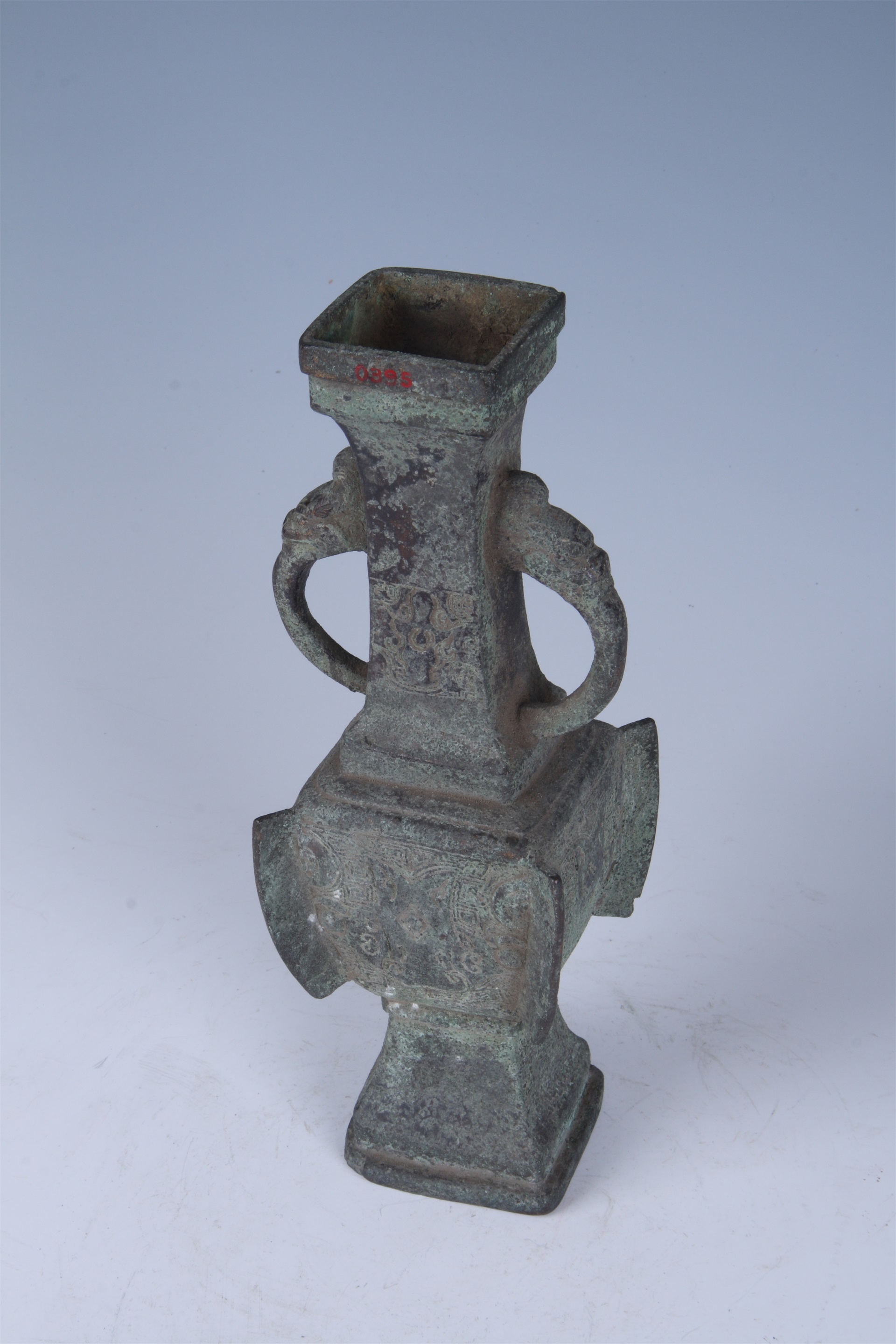 | 405 | 明晚期兽面纹铜觚 | 明 | 通高17 口径10.5*10.5 底径9.5 | 查看 |