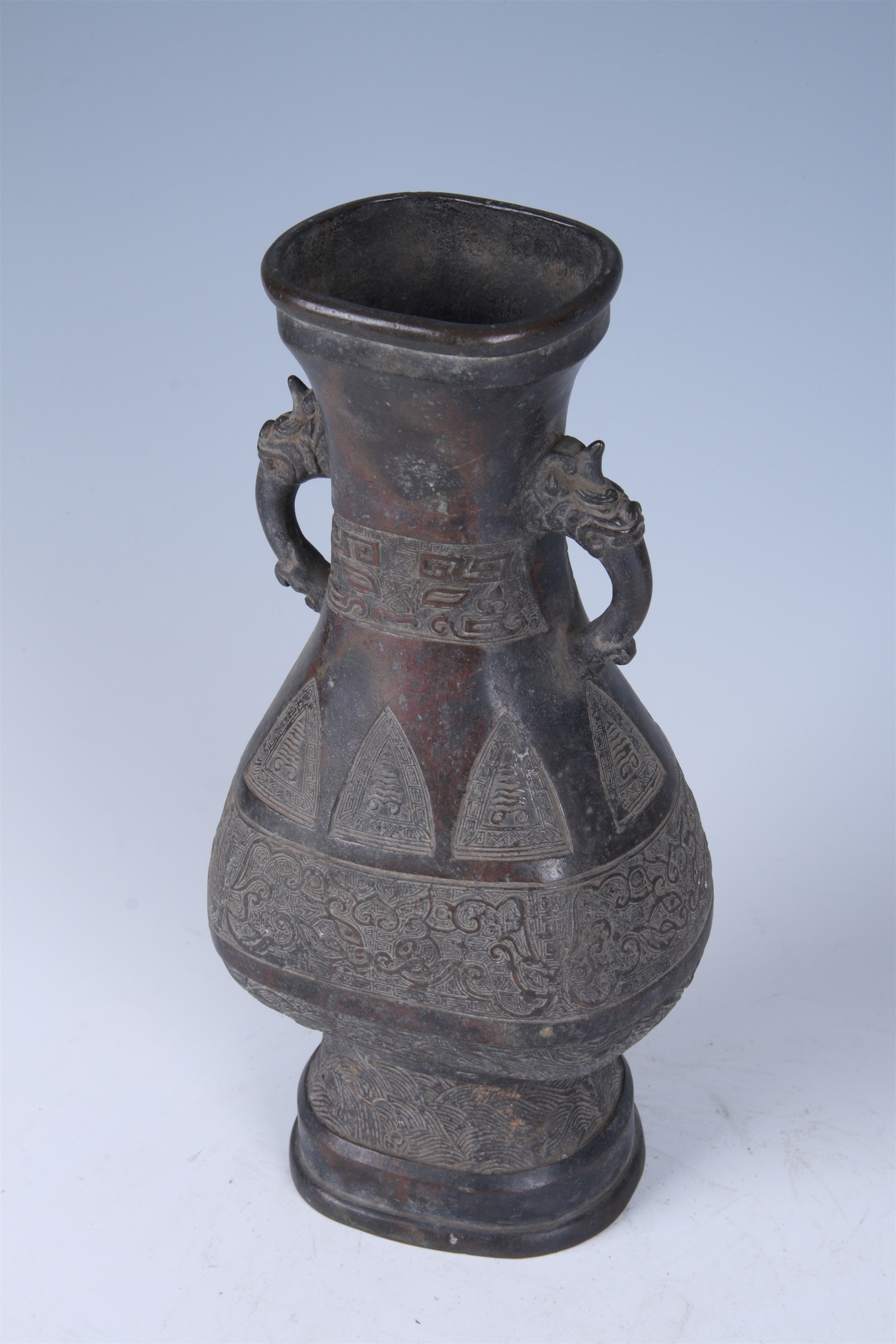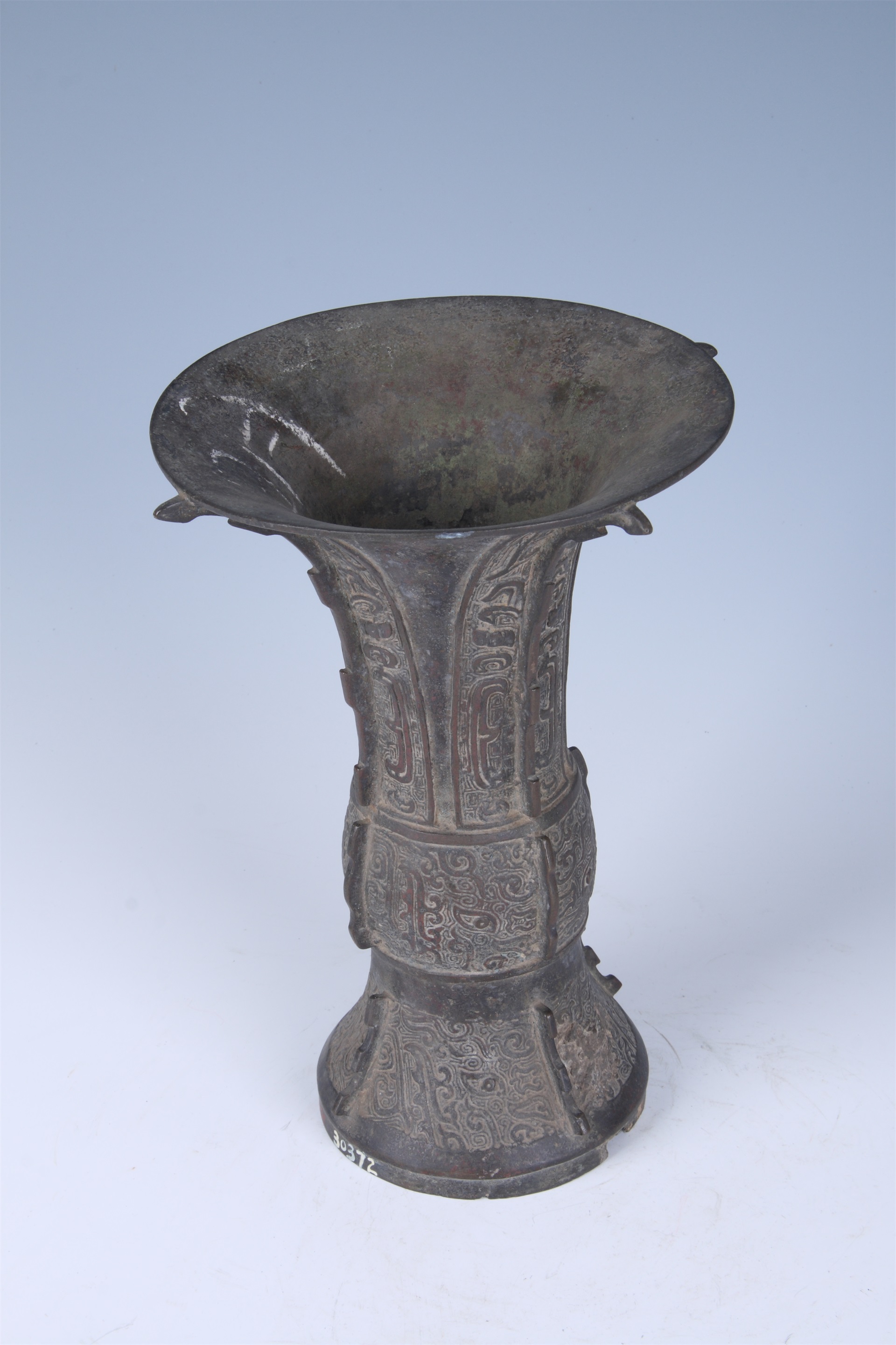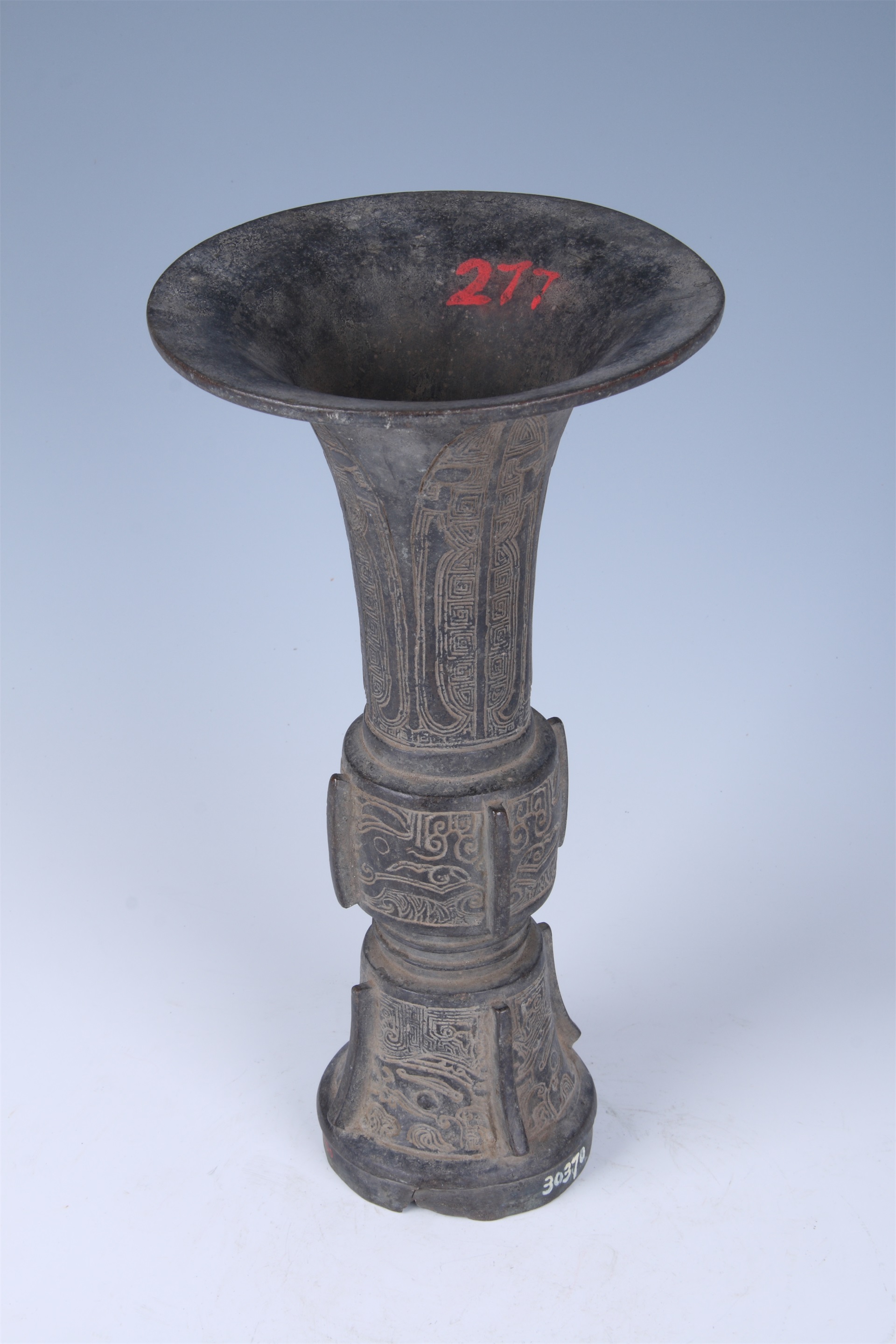 | 405 | 明晚期兽面纹铜觚 | 明 | 通高17 口径10.5*10.5 底径9.5 | 查看 |