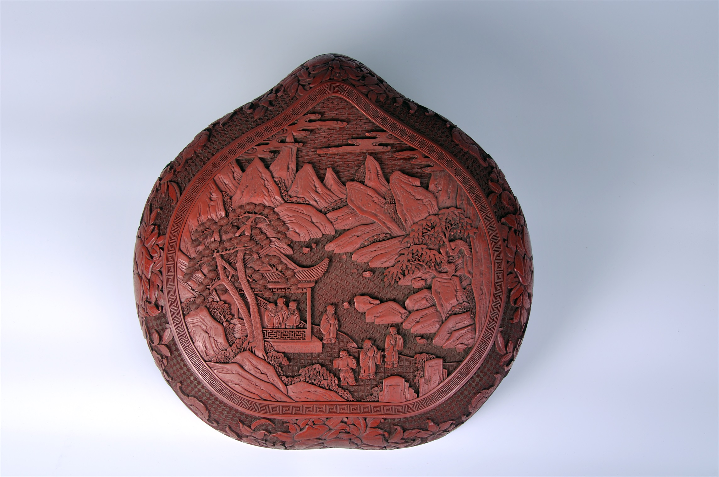 | 8 | 清剔红山水人物纹桃形盒 | 清 | 通长39 通高13.5 足径30.5 口径38 底径36厘米 | 查看 |