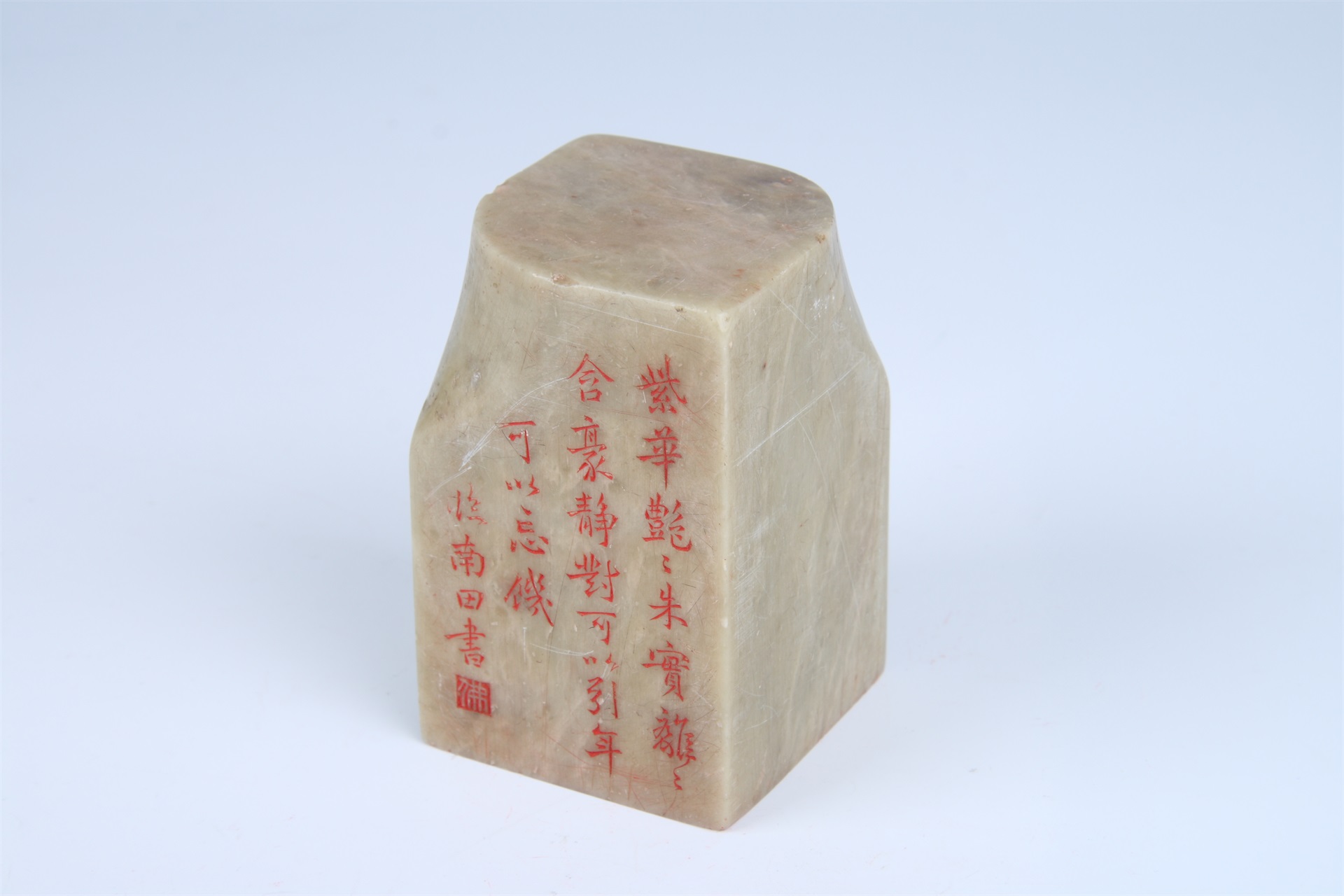 | 136 | 清至民国“择友求益改过全身静从容谨严俭约”青田玉方章 | 清至民国 | 通长5.4 通宽5.4 通高8.3 | 查看 |