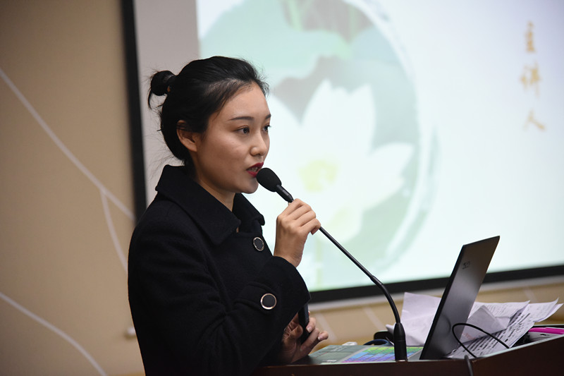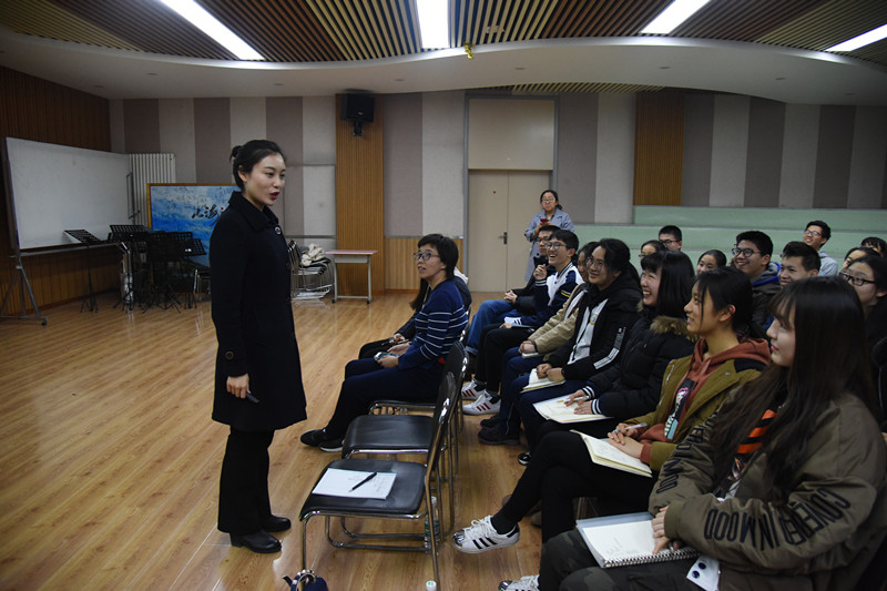 培训在二中两位小讲解员的精彩讲解中拉开了帷幕,她们的讲解语气亲切、极具有感染力,让台下观众仿佛身临其中,引起了阵阵掌声。随后,孙晓雯老师便上台开始了今天的正式培训。孙老师曾获青岛市文化广电新闻出版局“优秀共青团员”称号;去年8月至12月,作为青岛市文博系统唯一入选的讲解员,被中共中央宣传部选调入京参与“砥砺奋进的五年”大型成就展讲解工作。先后圆满完成了开幕式、党和国家领导人专场、十九大代表专场、外宾专场等重大讲解任务,是一位优秀而又经验丰富的讲解员。她分别阐述了讲解时应注意的礼仪和仪表仪态等方面的问题,精心准备的课件和细致入微的讲解让同学们如沐春风。在授课过程中孙老师也不乏与台下的同学们趣味互动,使得本以为会略显沉闷的培训会特别地生动活泼,笑声传遍了房间的每一个角落。