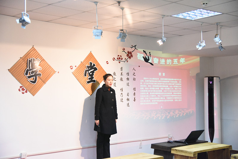 讲解员们首先在国韵学堂对各自一年来的工作予以总结述职,通过述职可以全面了解讲解员一年来的工作实绩;总结述职后,青岛地区唯一入选中宣部进京讲解“砥砺奋进的五年”大型展览的我馆讲解员孙晓雯,在现场为考核小组成员们讲述了“砥砺奋进的五年”大型展览的经济发展部分。流畅的语言、优雅的态势以及娴熟的讲解内容,博得现场评委们的肯定。随后,其他几位讲解员分别走进青岛古代史以及近代史展厅进行了现场讲解,在讲解过程中相互切磋交流,各显所长。
