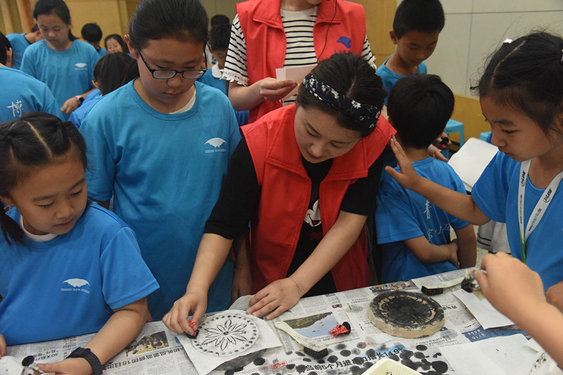 昨天大家了解了四大发明之一的造纸术,今天老师继续带大家了解另外一项发明——印刷术。如何能让小营员们更好地去感受这些发明的伟大?汉砖拓印是个不错的选择。瞧他们一招一式的样子,颇有一股专业范儿在其中。最后的水车制作给一上午的课程划上了圆满的句号,小营员们可以去尽情享用美味可口的午餐啦!