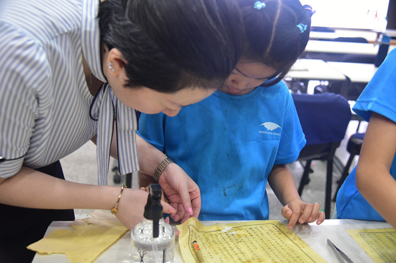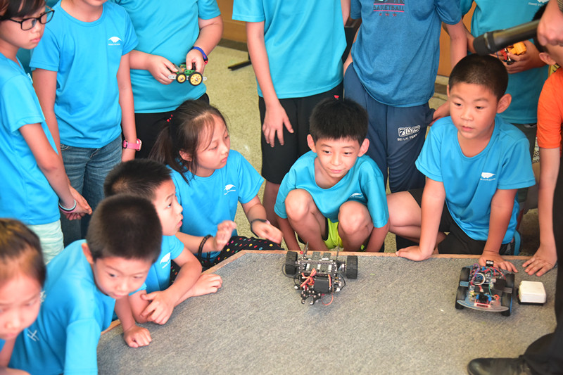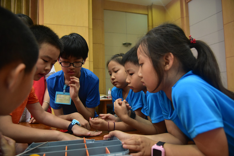 今天的课程主要有古籍修复体验、乐高机器人制作、专注力训练和编程。要说这几天夏令营课程的一个关键词,我想一定是——团结协作。不管是古籍修复体验还是机器人制作亦或是编程课,我们看到的更多是孩子们一起钻研,一起操作的身影:高年级的同学“教”低年级的同学,学得快的同学“带”学的稍慢一点儿的同学,率先完成的同学“帮”还没有完成的同学。短短几天的夏令营生活已经让这群孩子们相互之间建立起了深厚的友谊,谁说现在的孩子是垮掉的一代?在我看来他们是比任何时期都朝气蓬勃,孕育着未来和希望的一代。