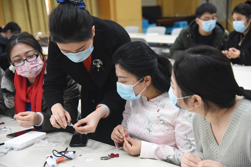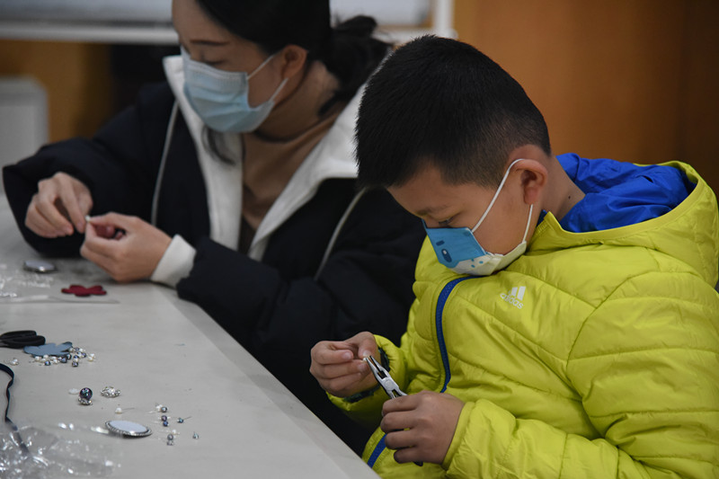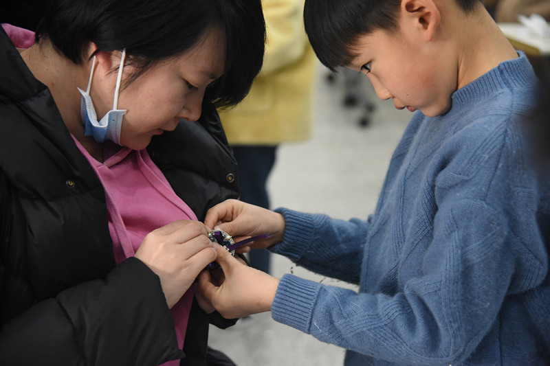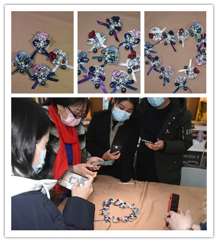 参与者制作热情高涨,工作人员耐心引导,主持人细心讲解,最终,一枚枚精致美丽的胸花制作完成。制作完成后,参与者竞相拍照,有的带上胸前拍闺蜜照,有的孩子为妈妈佩戴胸花,还有的用胸花表达对妻子的爱。现场气氛热烈,处处充满节日的欢快与祥和。