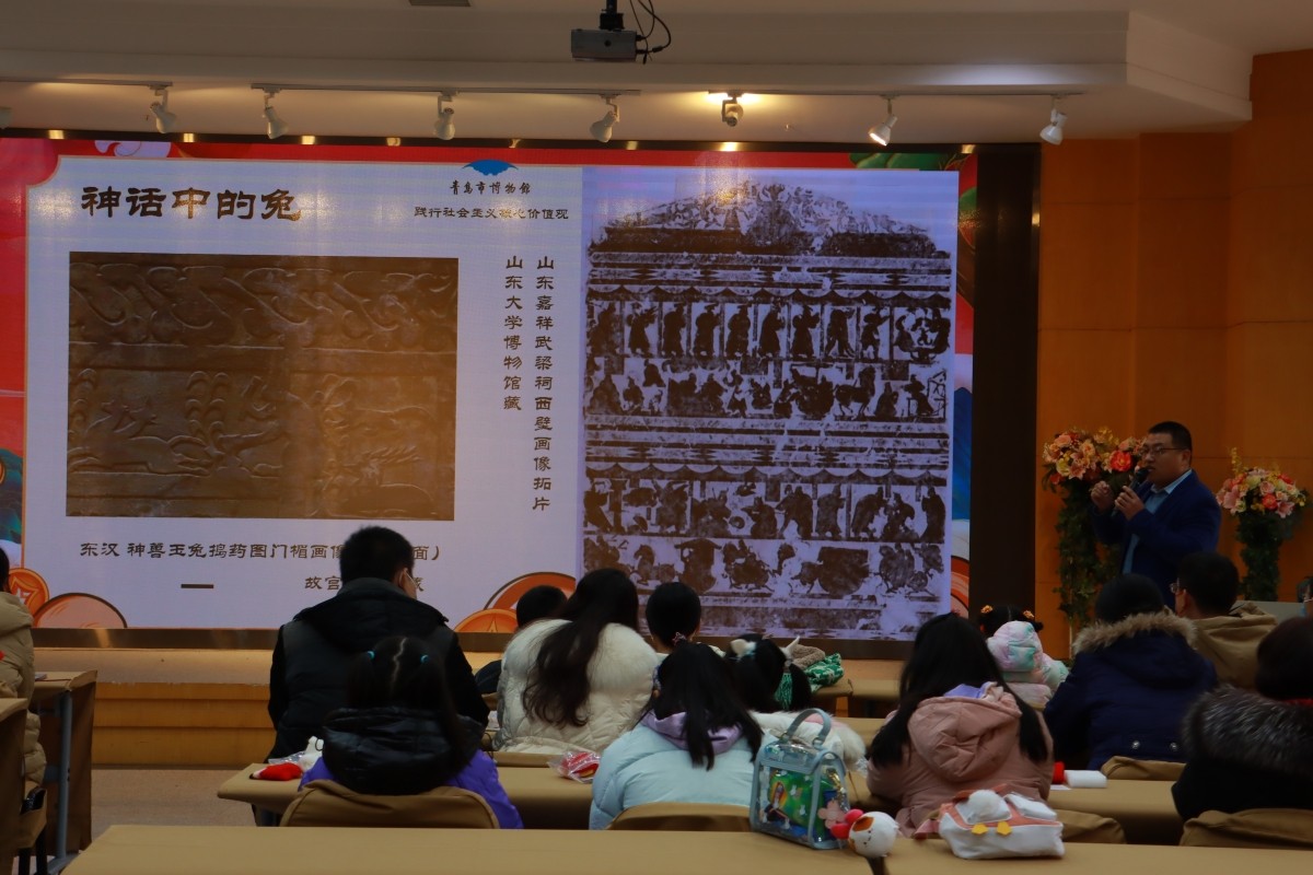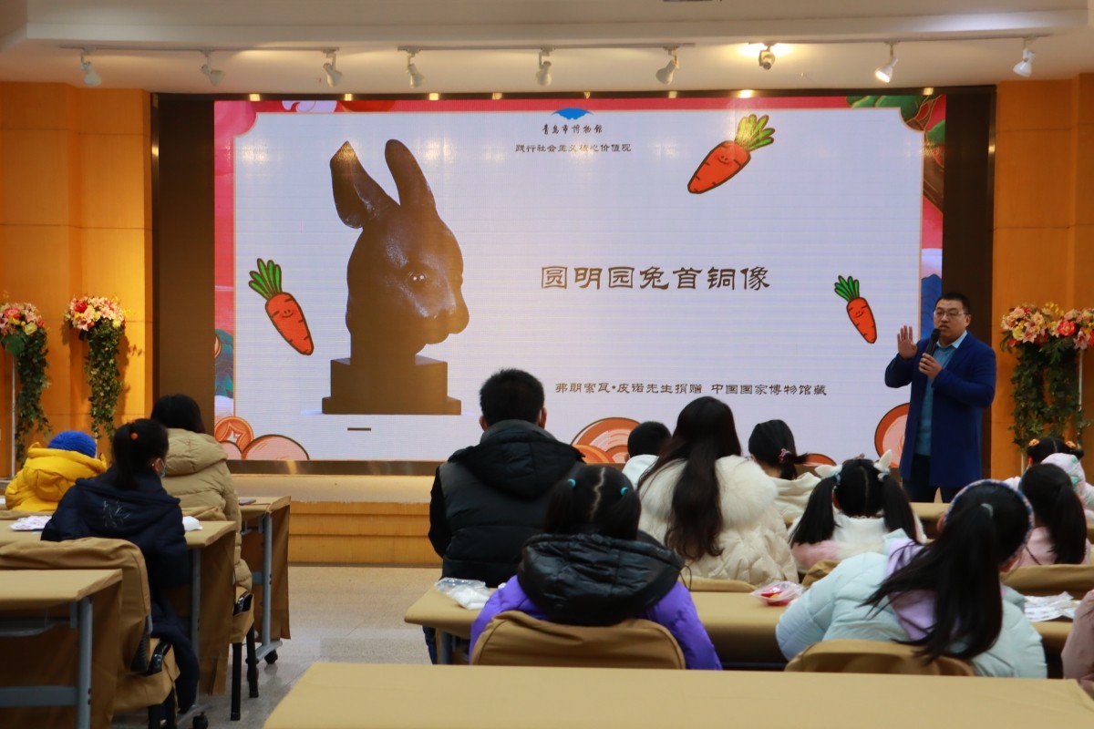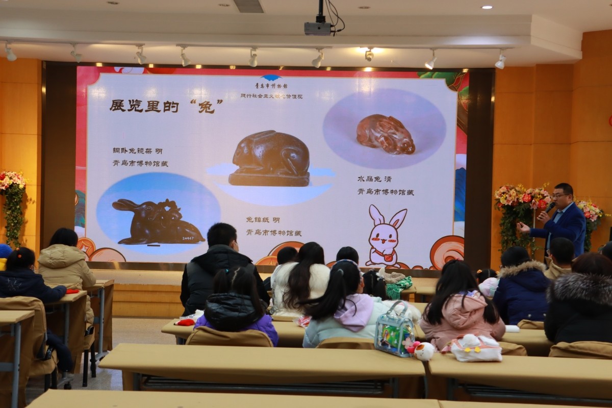 活动现场, 的工作人员首先介绍了铜兔、玉兔、瓷兔、书画兔等各种与“兔”有关的文物知识及民俗故事,让参与活动的亲子家庭对于可爱的“兔”有了更进一步的了解。