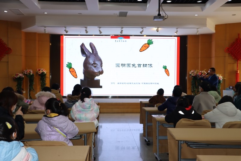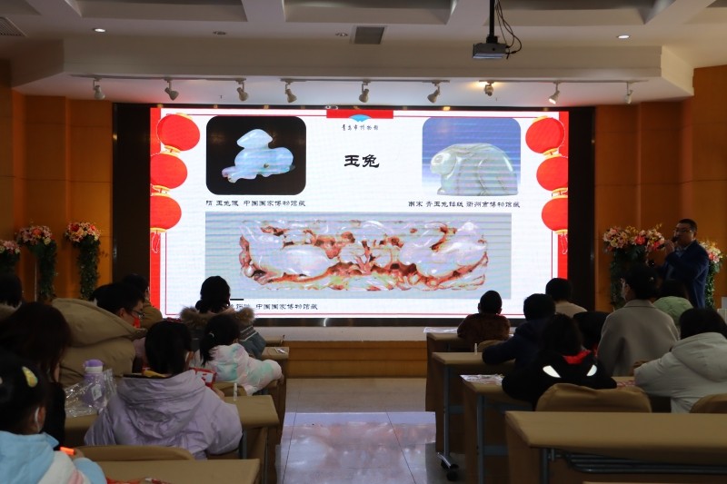 博物馆工作人员以博物馆里的兔打开了活动的序幕,分别介绍了兔铜首、瓷兔、玉兔、书画里的兔、兔儿爷等等,活动观众积极抢答问题了解学习了很多博物馆兔文物知识,现场氛围欢乐舒适。