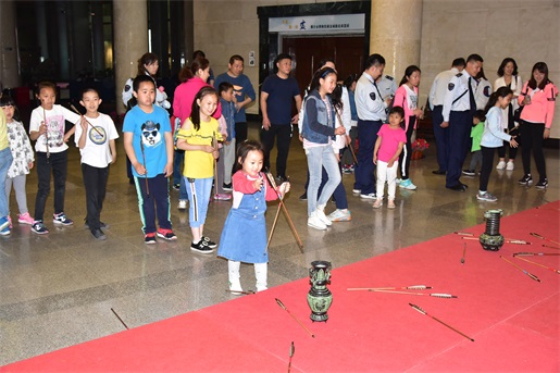 5月18日晚六点,我馆邀请青岛公交集团51组职工家庭共150余人度过了一个“奇幻的博物馆之夜”。 来自青岛市民俗体育协会快乐空竹队的15位空竹老师表演了“片龙”、顶杆、呼啦圈空竹等高难度动作,小朋友们也跃跃欲试,抖起了皮碗空竹,大人们则舞动起片龙,一起体验这项传统运动的乐趣。随后又体验了木版年画套印、投壶等互动体验项目,并在“青岛史话”展厅内跟随讲解员,用心聆听脚下土地传来的历史回声。参加活动的家庭纷纷表示这是一次非常有意义的活动,即丰富了历史知识又增近了亲子关系,原来博物馆是这么一个“好玩”的地方。一站式的超享定制文化“宵夜”点亮了博物馆的夜空。