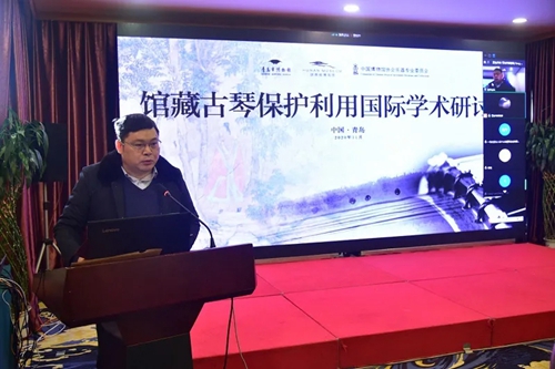 研讨会首先举行了简短的开幕式。青岛市文化旅游局副局长、党组成员辛龙首先致辞,对会议的召开表示祝贺,对中国博协乐器专委会、湖南省博物馆以及国内外嘉宾对青岛文博事业的关注支持表示感谢,同时对会议的防疫要求进行了强调; 邱玉胜馆长致辞中,总结青博历年馆藏古琴的活化利用成果,为古琴合作保护项目、新馆城市“文化客厅”定位提出新的畅想。湖南省博物馆袁建平副馆长的致辞,分享了湖南省博物馆珍贵古琴情况,和馆藏古琴研究、保护、修复、展示、传播等方面的成果,回顾了湘青两馆十多年来的多次合作,希望今后双方携手共进,形成更加有力、有效的工作机制,在更广泛的领域推动优秀传统文化的传承和弘扬。