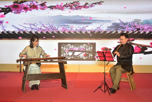 赏乐会上,我馆“博琴雅韵”古琴公益培训班的学员们及老师,以短小精悍的《仙翁操》开场,随后各位琴家带来九首琴曲,有清远空旷的《鹤舞洞天》,琴箫合奏的《梅花三弄》、音美苍凉的《玉树临风》、柔美深沉的《忆故人》、凄婉动人的《长门怨》,曲风恬静的《良宵引》、清浊合之的《石上清泉》、雅畅清逸的《普庵咒》,最后李村教授压轴出场,以一曲有“幽幽激流之情,洋洋涤荡之志”的《流水》结束本次雅集活动。