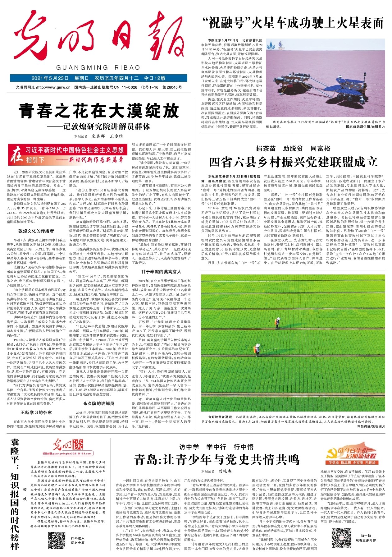2020年5月23日《光明日报》头版刊发《青岛:让青少年与党史共情共鸣》,点赞青岛各大学和中小学校在党史学习教育中通过体验式、沉浸式、研讨式的方式,让年青一代与党史人物、党史故事、党史精神产生更深的共情共鸣,让信仰之光照亮前行之路。