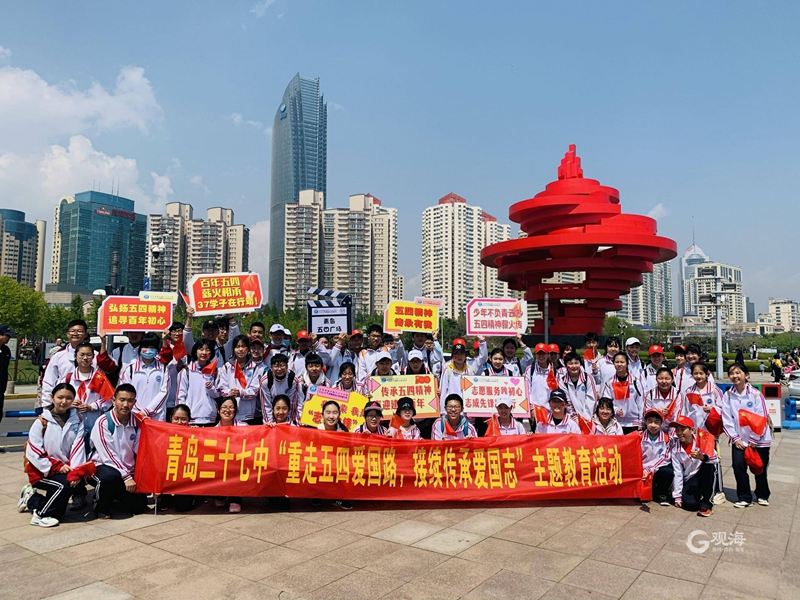 青岛三十七中“重走五四爱国路,接续传承爱国志”主题教育活动。