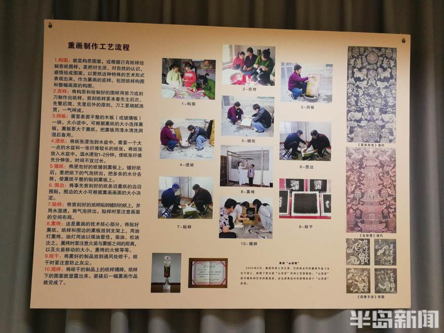 据介绍,熏画,流行于平度、李沧等胶东半岛地区,又称剪纸熏样画,是青岛市级非物质文化遗产,以其独特的制作方式,呈现独有的色彩与图案,构思精妙,生动传神,具有浓郁的乡土气息,生动展现淳朴的民俗风情。