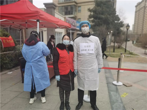 兴华路街道在全员核酸检测开始前,全面摸排辖区常住人口、流动人口数量和分布,按照每500-1000人设置一个采样单元的标准设置采样点。由楼长和志愿者按照楼院区域划分,引导居民分时段排队登记采样,节省居民排队时间。兴城路街道随处可见“大白”“红马甲”“蓝精灵”奔忙的身影,他们第一时间赶至各核酸检测点进行支援,为核酸检测工作按下了“加速键”。