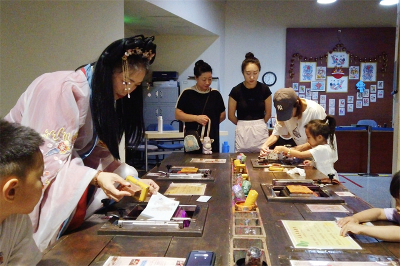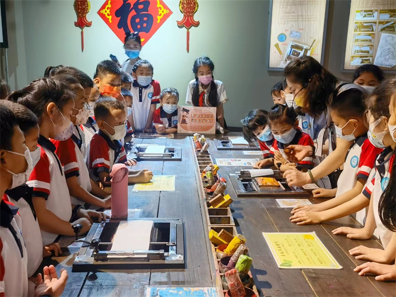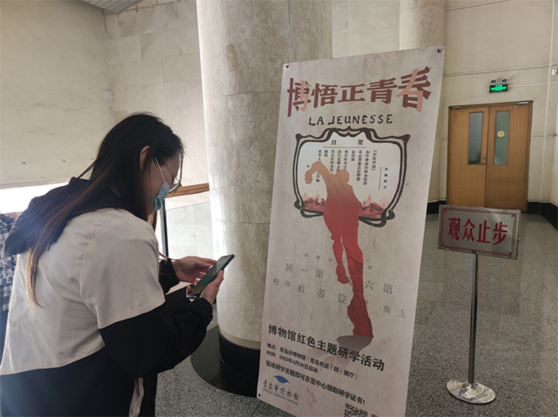 为更好推动革命文物资源进校园、进课堂,把文物资源禀赋创造性转化为学校思政课教育教学的优质资源,我馆作为省市两级爱国主义教育基地、未成年人社会课堂、研学旅行基地,依托自身丰富馆藏资源,积极贯彻习近平总书记关于革命文物工作的重要指示,不断挖掘红色文物承载的优秀文化与革命精神,推出丰富多样博物馆课程。 学生来博物馆参与青春团课打卡活动 面向青少年群体、依托馆内红色文物资源,推出线上线下相结合的“青春团课”打卡博物馆活动、“博悟正青春”红色研学活动、红军长征主题研学,向广大青少年传递青春奋斗之力量,传承红色革命精神;充分发挥博物馆“第二课堂”的教育职责,积极开辟思政课堂新模式,推出“胶澳日记”读城研学活动、“博乐伴成长”系列特色选修课、口述史交流研讨会,将馆藏资源与城市文化相结合,以青岛近代百年城市历史的完整沿革为课题,与学校科目教育接轨,厚植学生的爱国爱家情怀。赓续红色文化,筑牢青少年爱国之基,深化历史记忆,增强民族自豪。 木版年画体验 “博悟正青春”红色研学活动和“胶澳日记”读城研学活动