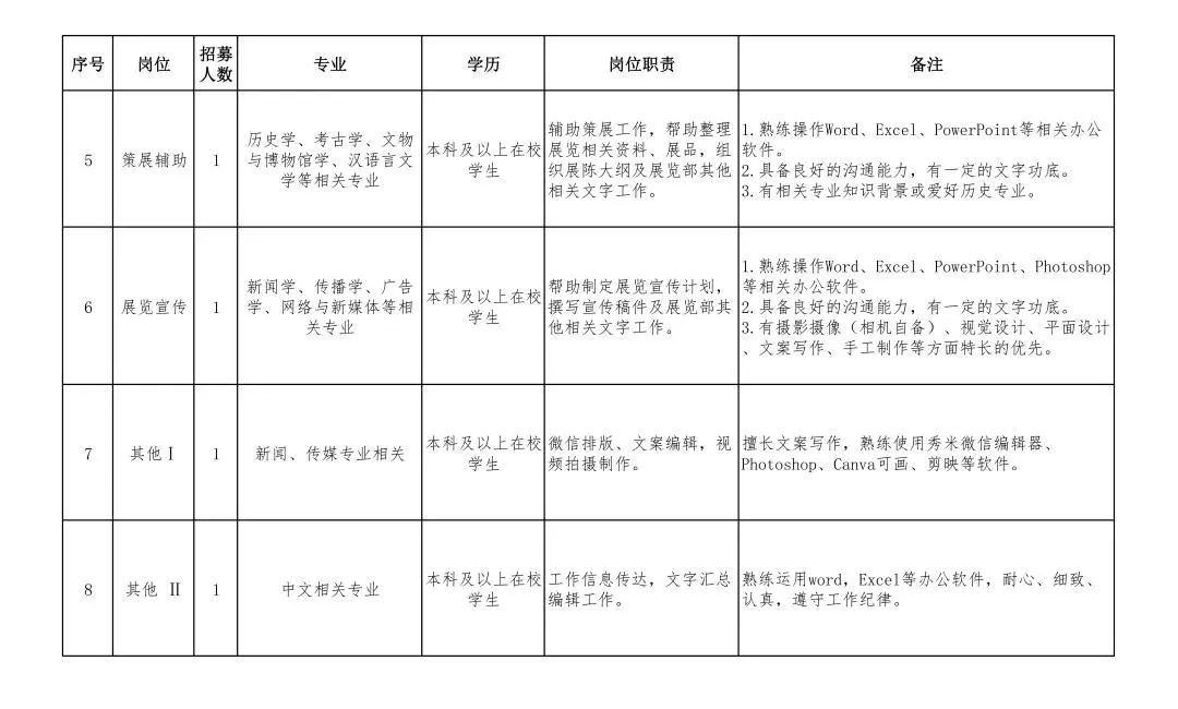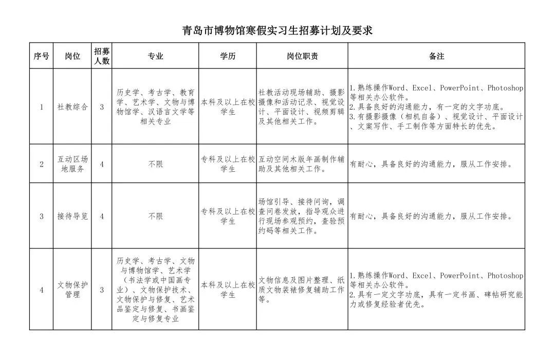 3.具备较为充裕的实习时间,能够遵守博物馆的各项规章制度;