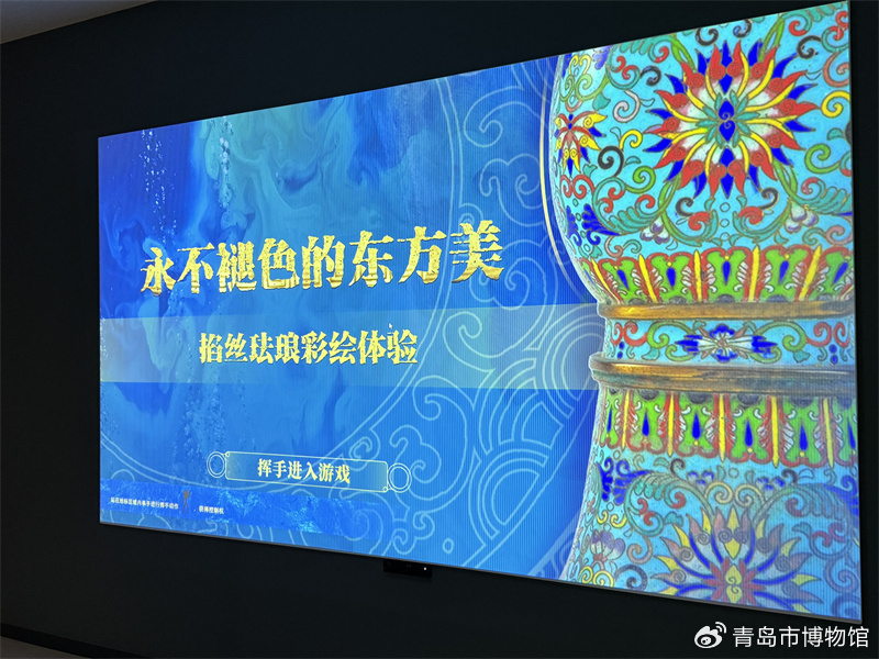 展陈形式灵活,设计方案巧思。在原有展厅布局上进行多样化的设计改造,营造静雅惬意的展示空间。升级后的展厅整体风格大气稳重,彰显中华优秀传统文化韵味。同时,运用数字化多媒体互动系统,透明OLED龛柜呈现玉器制作工艺的动画、投影+Kinect体感设备探秘掐丝珐琅彩绘体验,拉近观众与文物之间的距离。
