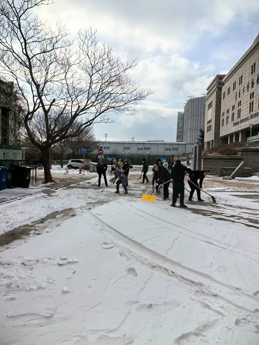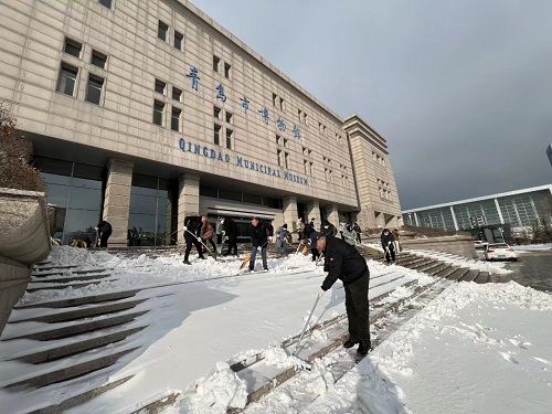 为全力应对极端雨雪天气,保障群众出行安全,2月5日上午, 党总支积极响应上级号召,第一时间闻雪而动,组织全体党员干部职工开展“同扫门前积雪、共筑大爱青岛”主题党日活动,及时恢复博物馆整洁安全的游览参观环境。