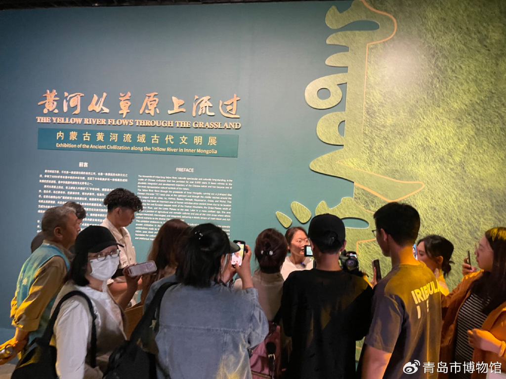 5月16日,由 联合内蒙古地区八家博物馆共同举办的《黄河从草原上流过——内蒙古黄河流域古代文明展》开幕,集中展现内蒙古黄河流域古代文明的独特魅力,鹿角金步摇、居延汉简等明星文物,精美绝伦,难得一见,开展当天青岛日报、半岛都市报等20家媒体和平台对展览进行了深度采访和报道,前来观展的市民络绎不绝,不少学生现场临摹文物,黄河文化在这里得到新的教育传承。