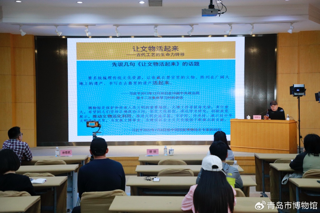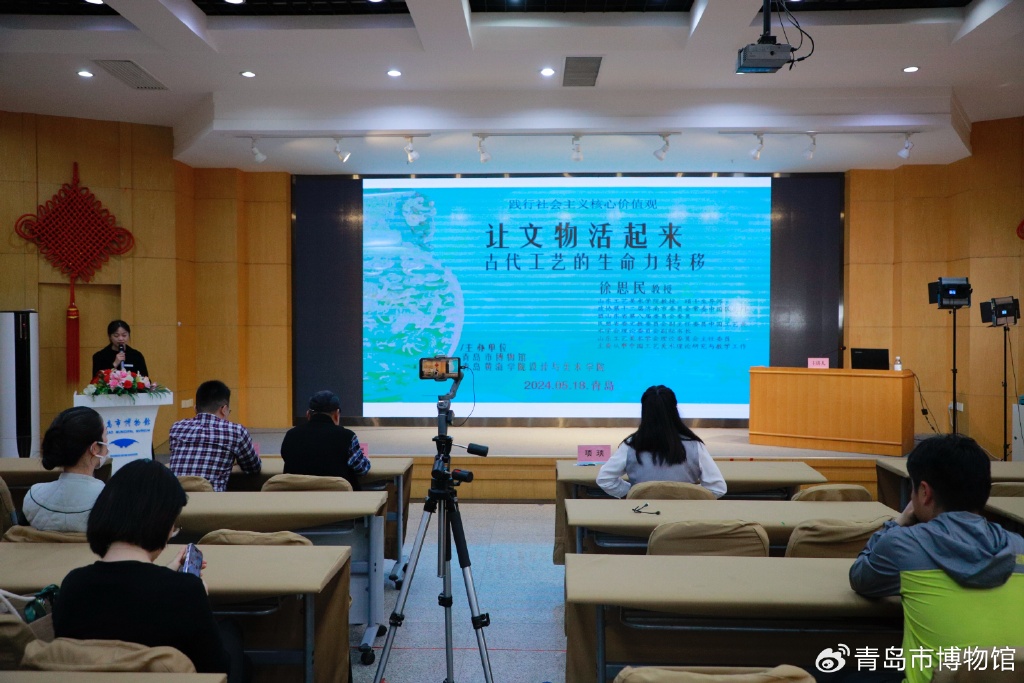 博物馆日当天,特别邀请山东工艺美术学院人文艺术学院教授,硕士研究生导师徐思民教授,开展主题讲座,徐教授以古代工艺的根源讲起、以代表性文物为例,结合美术考古、历史人文、政治经济等多因素分析其产生的时代背景,重点讲述我馆《百工奇技——馆藏古代工艺品陈列》展厅的经 品,呼吁大家走进展厅,回溯历史,发现古代工艺的独具匠心,感悟东方美学和生活之美,新浪微博同步直播,线上线下约600位观众观看聆听。