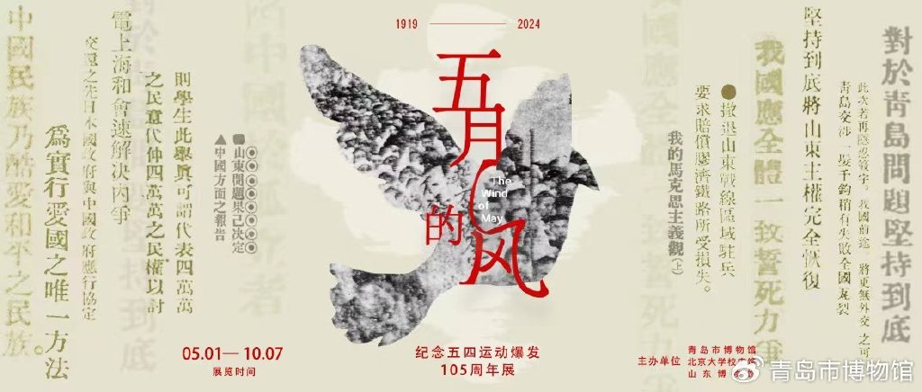 欢迎各位观众来到 ,从《五月的风——纪念五四运动爆发105周年展》中寻找答案。