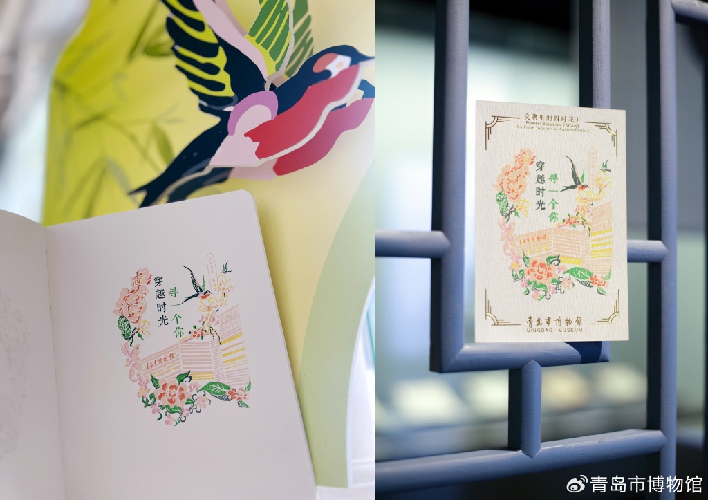 2025年5月10日-18日, 联合青岛世博园景区推出“文物里的四时花开”主题打卡。集限定明信片和套色印章,让文物之美与自然之韵在方寸间永恒定格!点击参与,开启穿越时空的“双生花绽”浪漫奇旅。