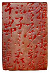 2、高凤翰自刻边跋:“杂录古今成语,属新安汪子素衷作五面印,老阜左手记”为白文草书体,刀锋犀利潇洒,为高氏晚年篆刻不可多得的第一实物。
