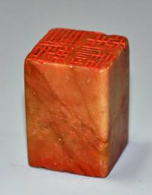 二、南园(椭圆形朱文印)寿山石章 高4.3cm,印面边长2.3cm