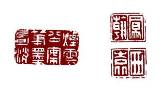 《高凤翰书画集》(中国民族摄影艺术出版社)第293页,上海博物馆藏高凤翰梅花图册中有“烟云公案笔墨勾销”印钤,第264页重庆博物馆藏高凤翰杂画册中有“凤翰”“西园”连珠印,“书法空间”清代高凤翰部分,列举高氏常用印中亦有此印。