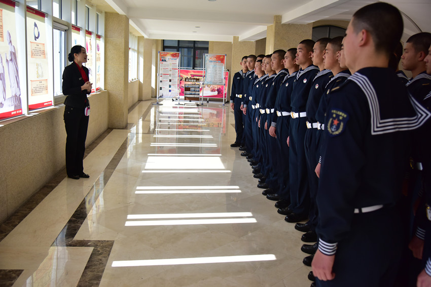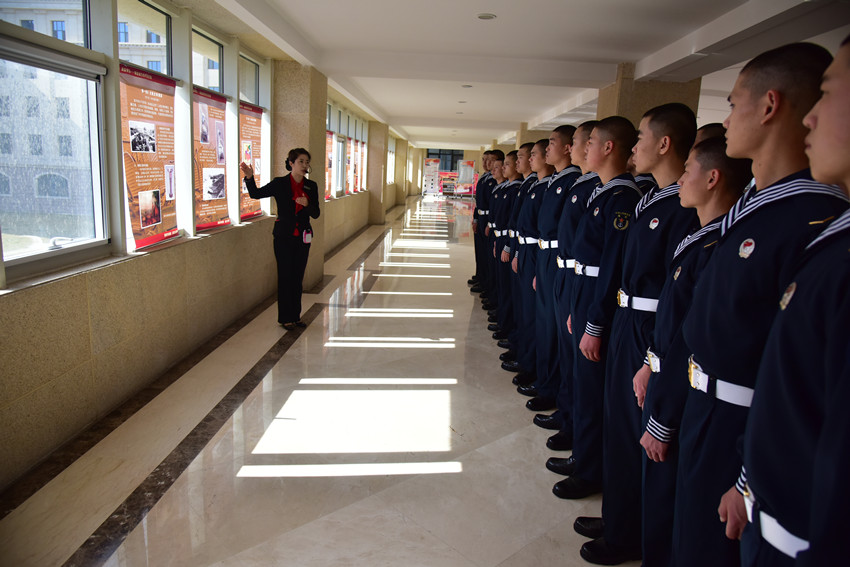 一行几人,来到中国人民解放军海军潜艇学院参加“落实军民融合发展战略,推进红色教育资源共享”签字仪式,并进行五进活动进军营宣讲展览。
